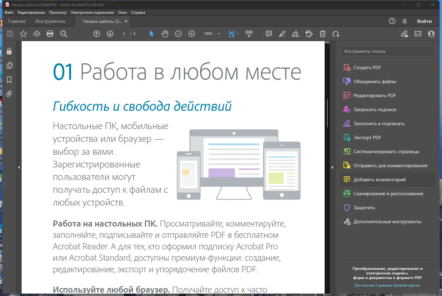 Использование Adobe Acrobat обеспечивает высокий уровень мобильности, надежности и расширенные возможности для работы с PDF. Интуитивный интерфейс и поддержка сенсорных устройств делают его незаменимым инструментом как для офисных, так и для личных нужд.