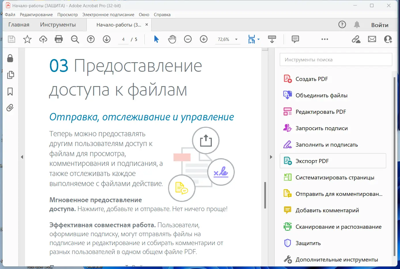 Программа включает инструменты для объединения файлов, сканирования документов в PDF, стандартизации процессов работы с PDF, защиты содержимого, создания заполняемых форм, а также добавления мультимедийных элементов. Эти возможности делают Acrobat незаменимым инструментом как в офисе, так и в мобильной среде, повышая эффективность вашей работы с документами.