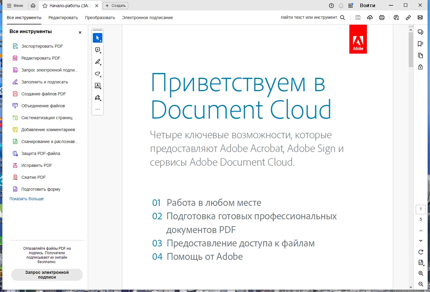 Adobe Acrobat — это профессиональное решение для работы с файлами PDF, объединяющее мощные инструменты для создания, редактирования и защиты документов. В дополнение к настольной версии предусмотрено мобильное приложение и облачные сервисы Document Cloud, позволяющие управлять файлами через любой браузер и устройство.