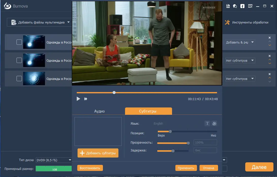 - Интуитивно понятный интерфейс и возможность создания меню для DVD-дисков.