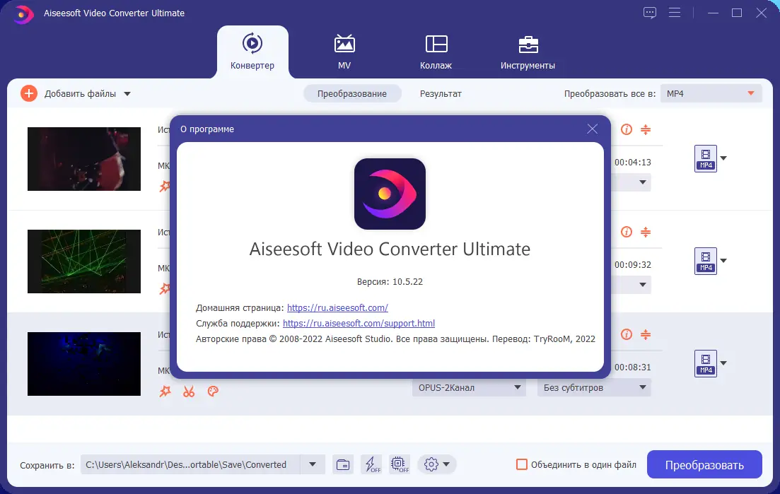 - Извлечение аудиодорожек из видео и их конвертация в форматы M4A, MP3, AAC и другие.