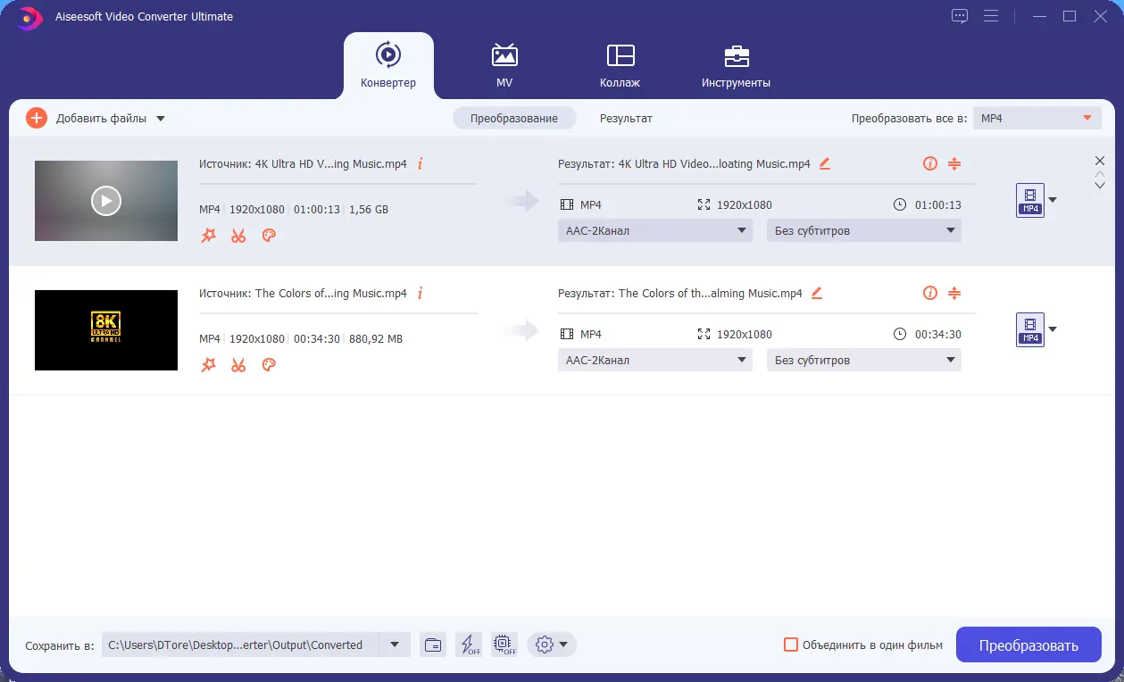 - Высокое качество конвертируемых видео и возможность повышения разрешения