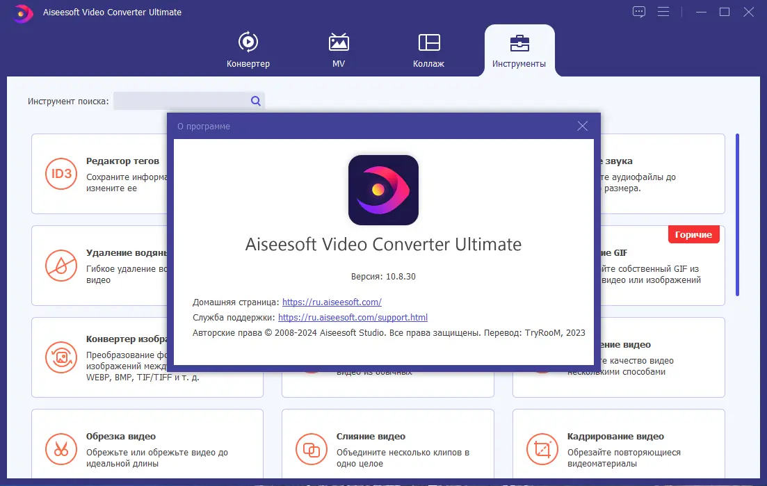 - Редактирование видео: обрезка, вырезание, объединение файлов, добавление водяных знаков, съемка скриншотов;
