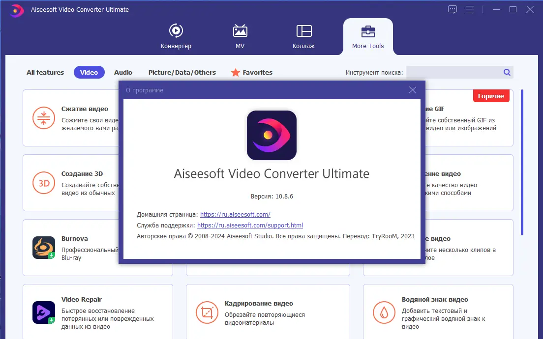 - Редактирование видео: обрезка, соединение, добавление водяных знаков, съемка скриншотов