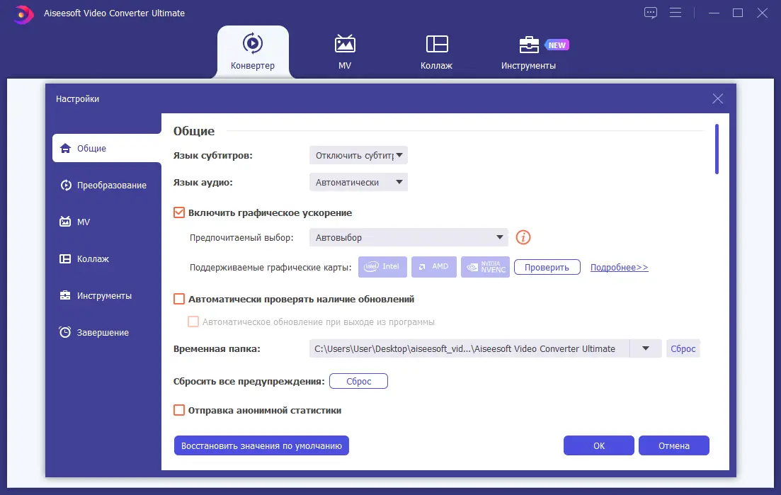 Обратите внимание, что программа поддерживает загрузку видеороликов с различных видеохостингов автоматически по скопированной ссылке. Значения качества при конвертации можно повысить, а также убрать шумы или повернуть видеоматериал по желанию. Поддерживаются форматы для популярных устройств, таких как iPhone, iPad, Samsung и другие. Программа также предоставляет функции изменения параметров, обрезки, съемки снимков и предварительного просмотра, что делает монтаж и обработку максимально комфортной.