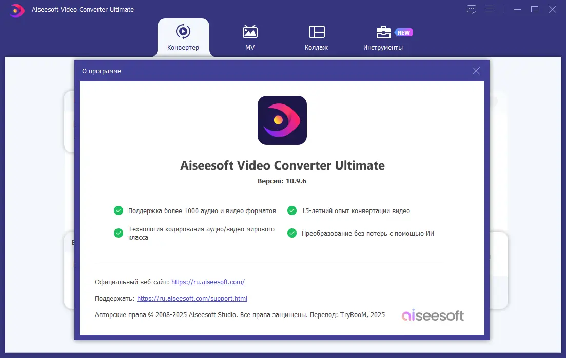 Aiseesoft Video Converter Ultimate — одна из лучших программ для работы с видео и DVD. Она позволяет легко конвертировать DVD, видеофайлы и папки Blu-Ray в популярные форматы, а также создавать 3D-видео. Встроенный видеоредактор дает возможность настроить эффект, обрезать или объединить клипы, добавить водяные знаки и извлечь аудиодорожки, преобразуя их в нужные форматы. Интерфейс программы интуитивно понятен, что ускоряет процесс обработки видео и облегчает настройку параметров. Во время установки пользователь может выбрать оставить ли сайт автора репака, а также активировать программу с помощью ключа или в режиме portable.