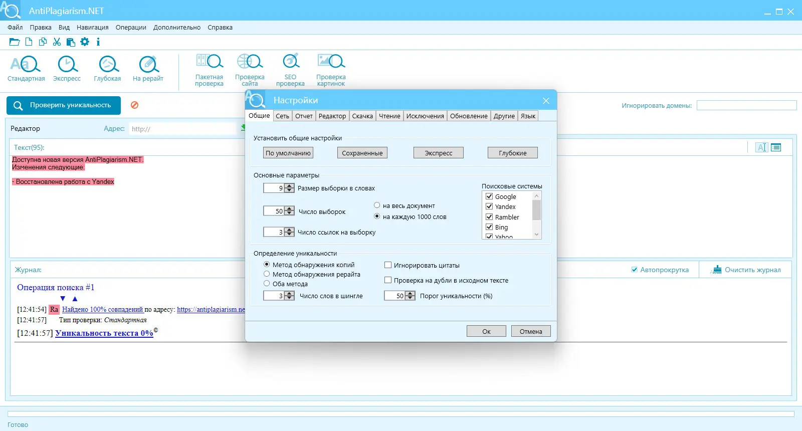 Кроме того, AntiPlagiarism.NET умеет работать с несколькими поисковыми системами, распознавать капчи, работать через прокси, сохранять отчеты и анализировать фото на уникальность. Возможности пакетной проверки, проверки сайтов и настройки параметров поиска делают его универсальным решением для различных задач связанных с контролем уникальности текста.