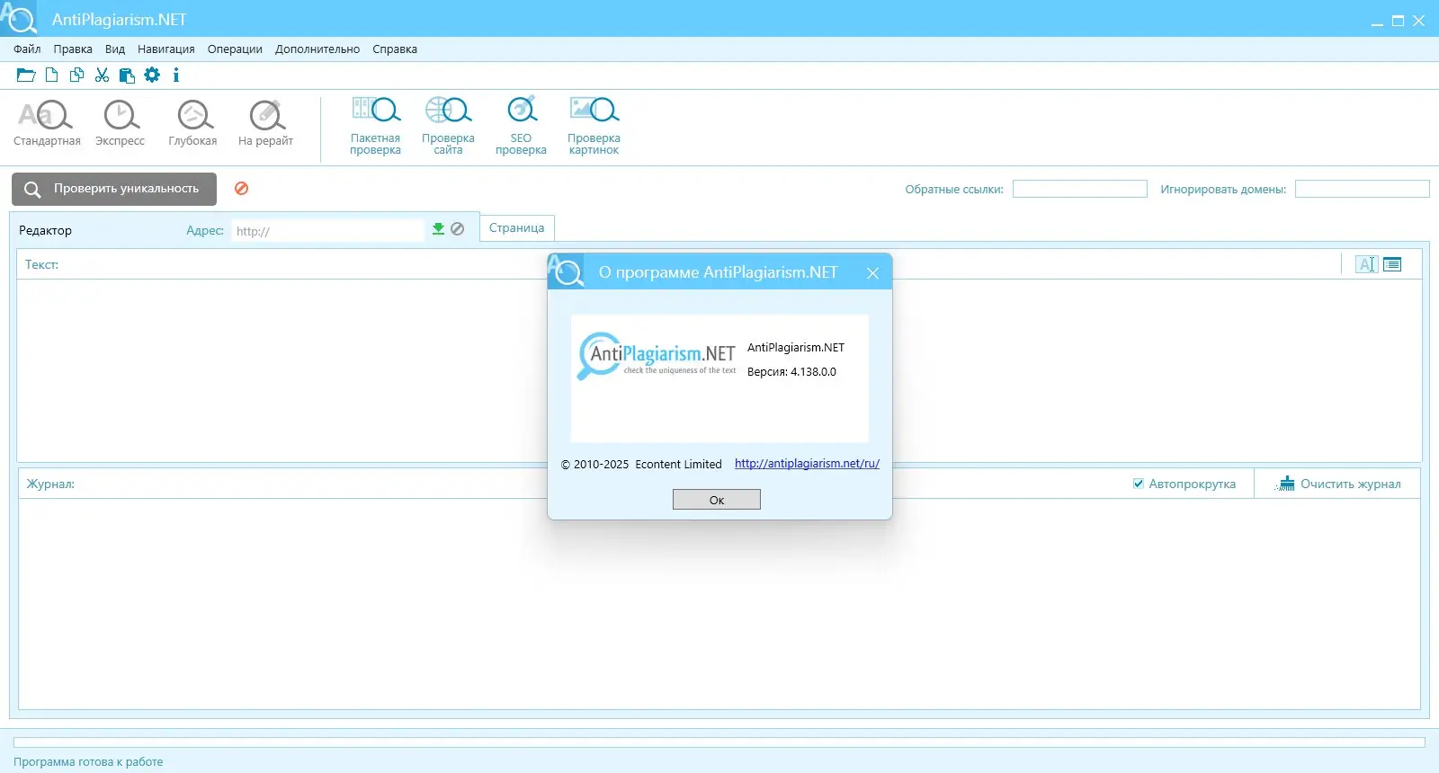 Программа понимает задачу работать с различными форматами и папками, предоставляя пакетные и сайтовые проверки, а также возможность точной настройки параметров анализа по порогам уникальности, длине шинглов и другим критериям.