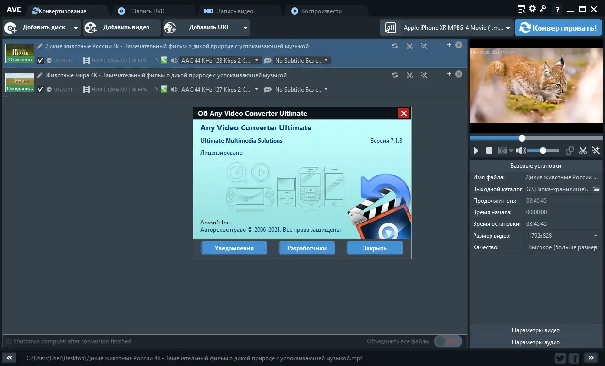 Any Video Converter Ultimate — это мощное решение для обработки видео и DVD. С его помощью можно конвертировать видео из большинства популярных форматов, риппировать DVD диски и папки, создавать индивидуальные видеоклипы, а также преобразовывать файлы для совместимости с разными портативными устройствами. Программа обеспечивает быструю работу и сохраняет высокое качество выходных файлов, включая HD видео, что делает её незаменимой для профессионалов и домашних пользователей.