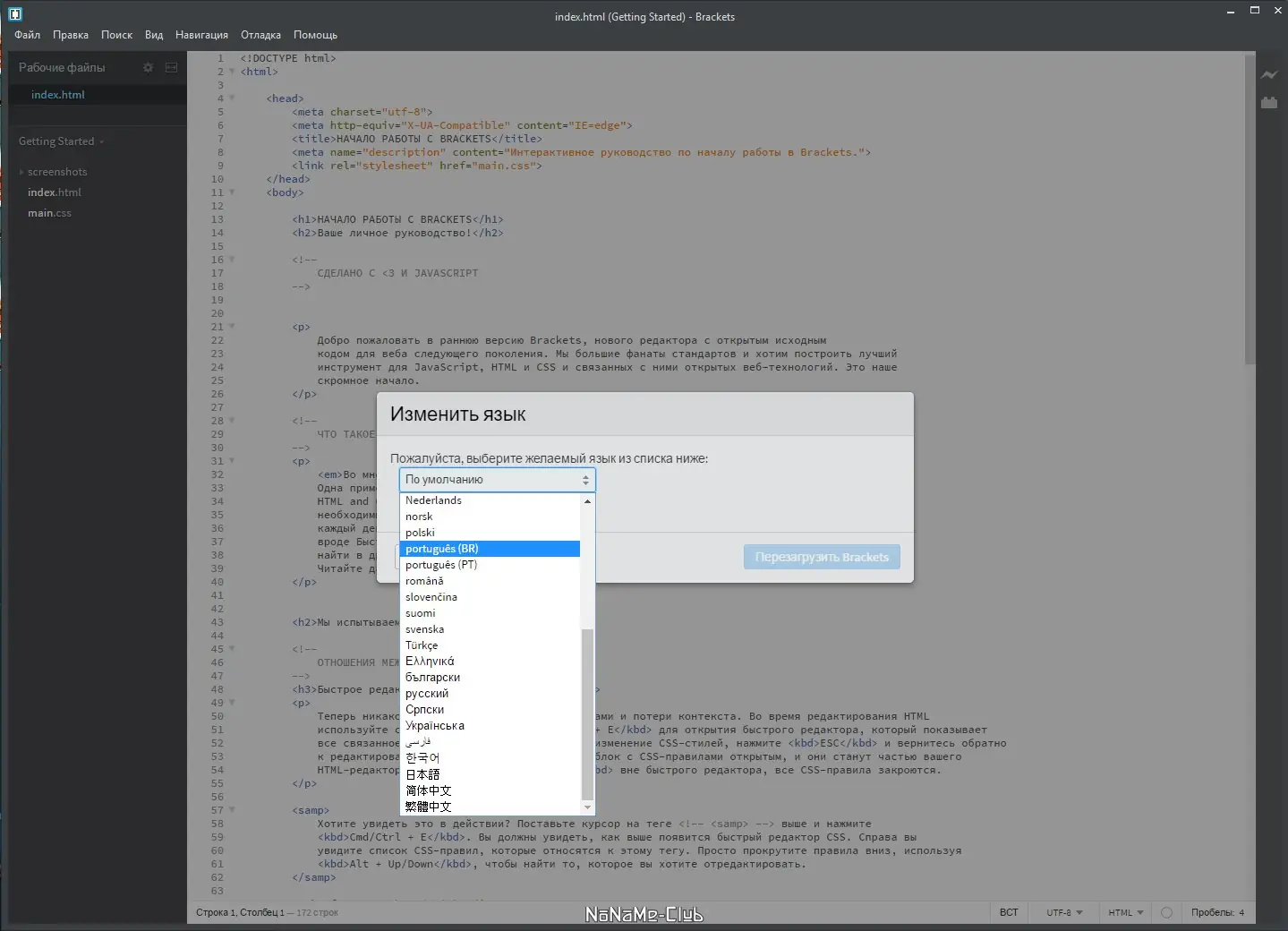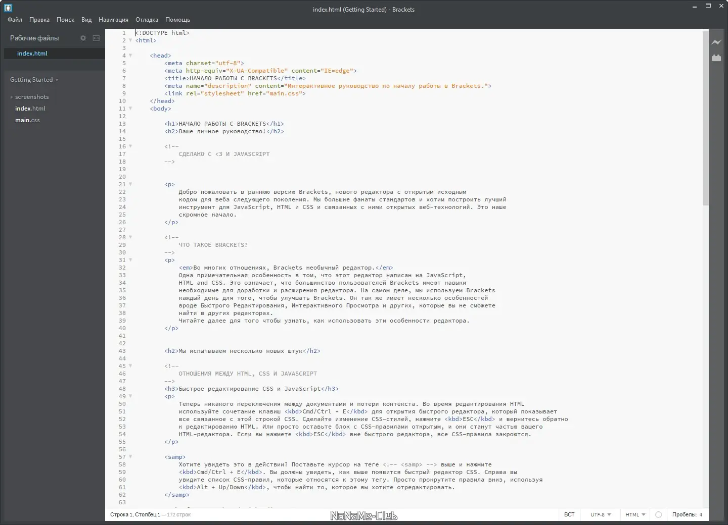 Brackets — это удобный и легкий редактор исходного кода, разработанный компанией Adobe, предназначенный для веб-разработчиков, использующих HTML, CSS, JavaScript и другие языки программирования. Программа обеспечивает приятный интерфейс и богатый набор функций, необходимых для эффективной работы над проектами любой сложности.