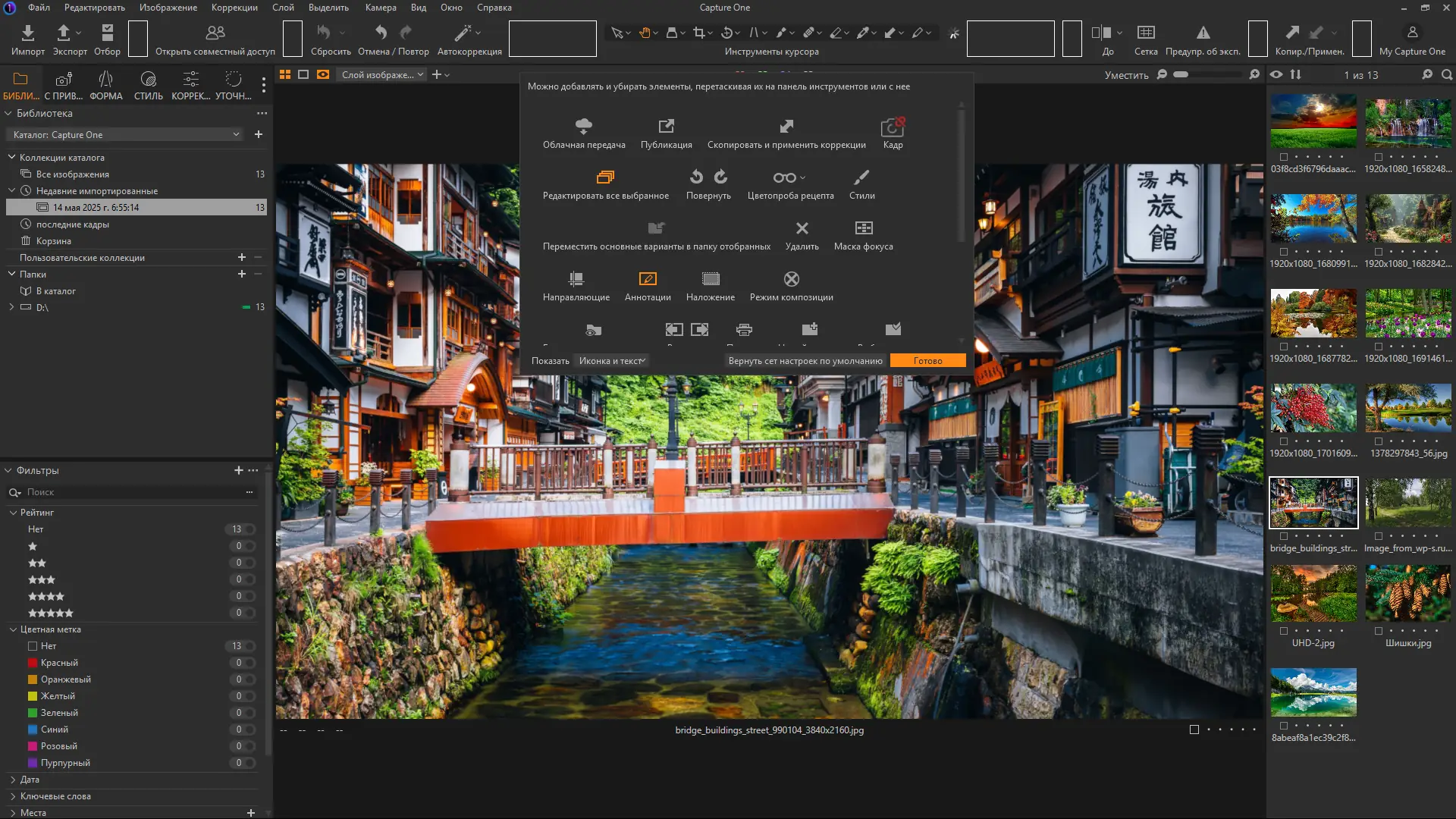 Capture One — один из лучших профессиональных инструментов для работы с цифровыми фотографиями в формате RAW. Он поддерживает камеры от ведущих производителей, таких как Canon, Nikon, Fuji, Sony, и других, включая последние модели, что обеспечивает максимальную совместимость. Программа позволяет конвертировать исходные RAW-файлы в популярные форматы JPEG, TIFF, PNG и DNG, сохраняя все детали и качество снимков. Особенность заключается в возможности использования нескольких вариантов корректировки одного изображения на базе исходного RAW, что дает больше гибкости при обработке. Интерфейс интуитивно понятен и включает удобные инструменты для настройки баланса белого, восстановления теней и бликов, устранения шума, повышения резкости и цветокоррекции. Capture One создан для того, чтобы минимизировать необходимость постобработки в сторонних редакторах, сделав работу с фотографиями быстрой и эффективной.