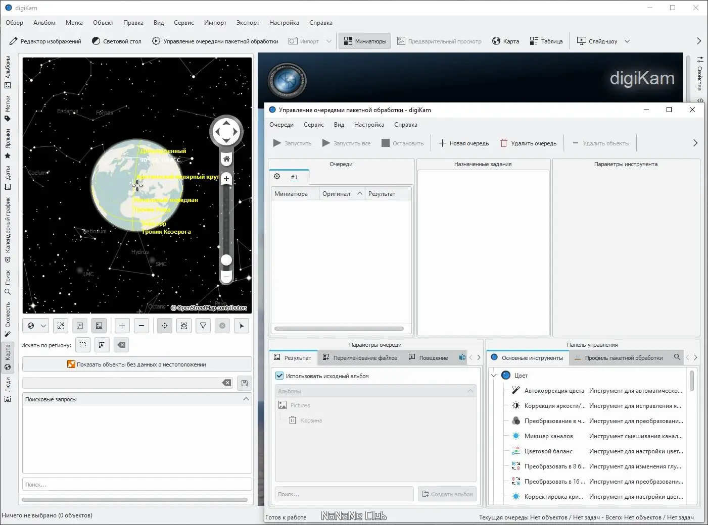 Дигикам — это мощная программа для Windows, предназначенная для обработки и организации цифровых фотографий. Она поддерживает импорт снимков напрямую с фотоаппарата, внешних устройств, таких как SD карты или USB-накопители, а также работу с RAW-файлами и метаданными. Пользователи могут добавлять теги, выставлять оценки, выполнять автоматическую каталогизацию по дате и другим критериям. Также реализована возможность поиска файлов по тегам, локациям и метаданным EXIF, IPTC, XMP. Возможна просмотр альбомов на карте с использованием гео-информации.