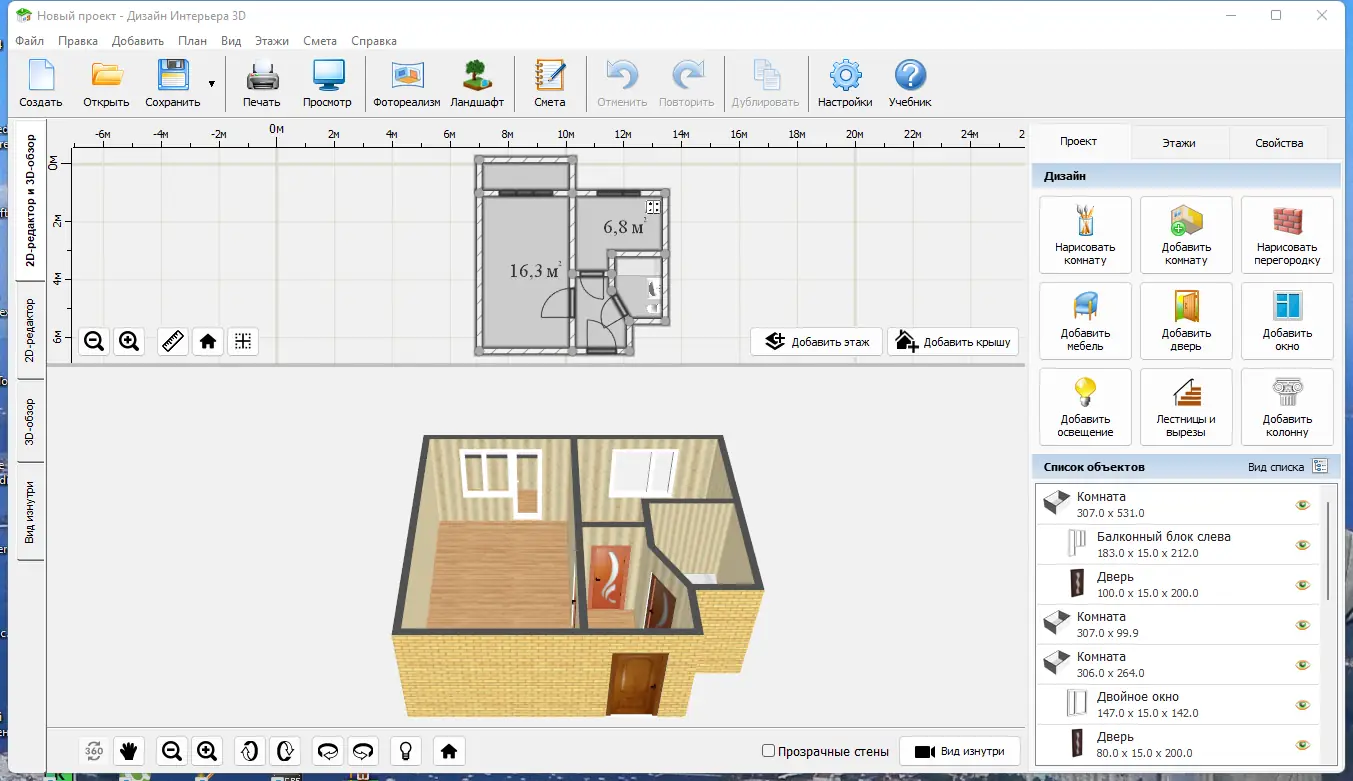 Программа «Дизайн Интерьера 3D» предназначена для тех, кто хочет самостоятельно разработать дизайн интерьера, избегая затрат на услуги специалистов. Интерфейс интуитивно понятен, подходит как для новичков, так и для профессионалов. Функционал включает создание подробных планировок, работу в трехмерном режиме и возможность быстрого редактирования. Встроенные типовые решения помогают сэкономить время, а богатый каталог материалов позволяет реализовать любые идеи по оформлению помещения. Также предусмотрена возможность экспортировать проекты в формат изображений или PDF, чтобы легко делиться результатами и вносить коррективы.