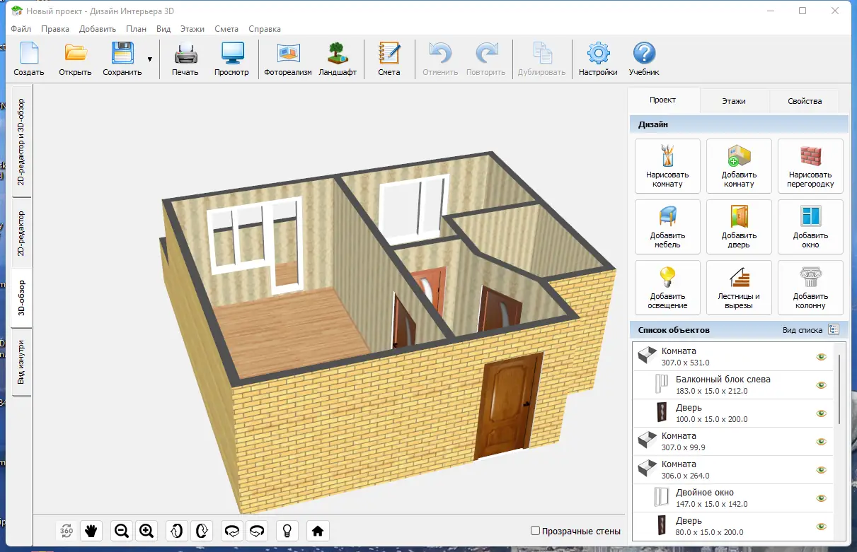 «Дизайн Интерьера 3D» — это удобная программа для перепланировки и создания дизайн-проекта квартиры своими руками. Позволяет сэкономить до 30% времени и денег при ремонте: вы будете точно представлять облик всех комнат после ремонта, сможете удачно расставить мебель и технику.