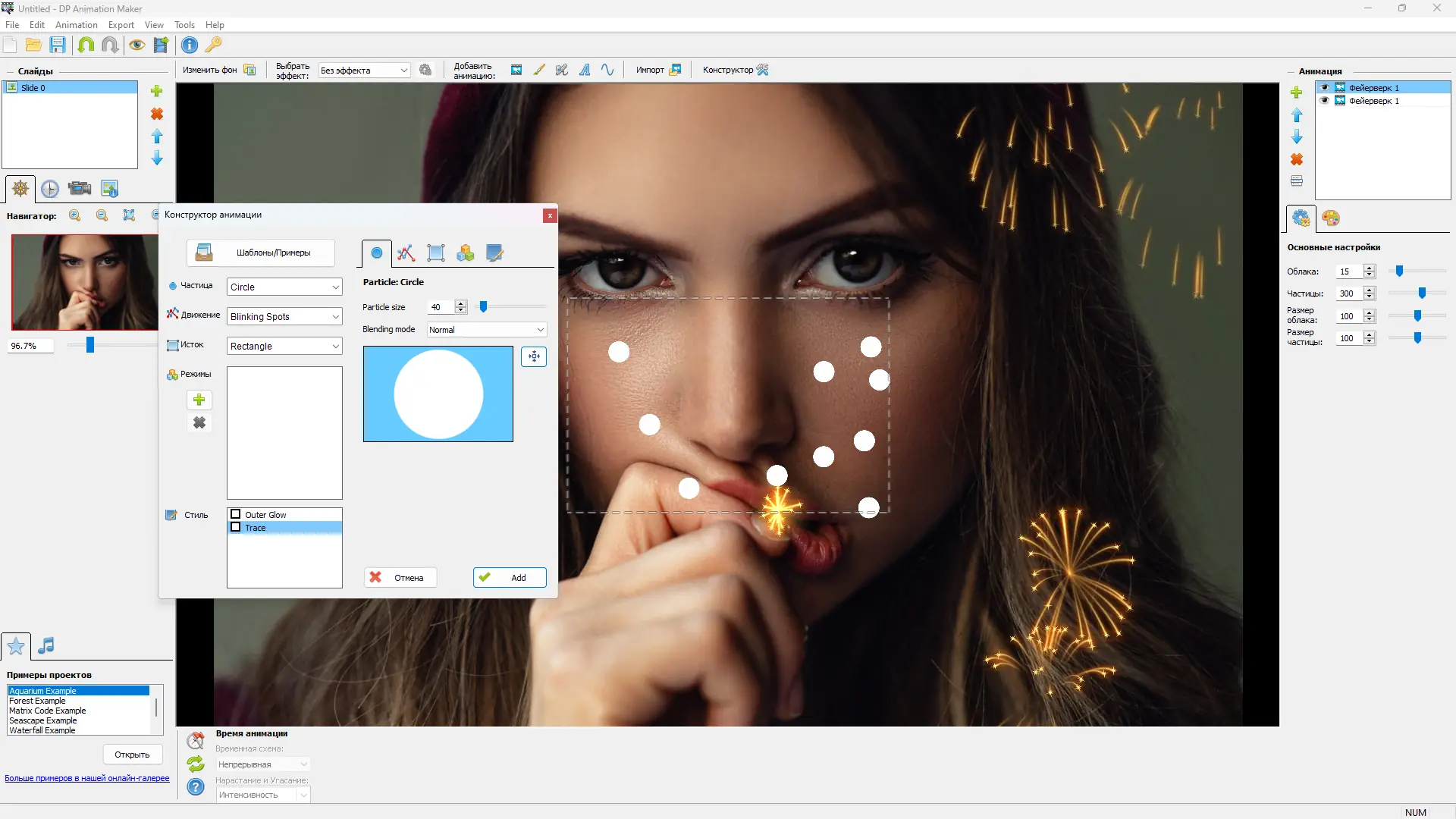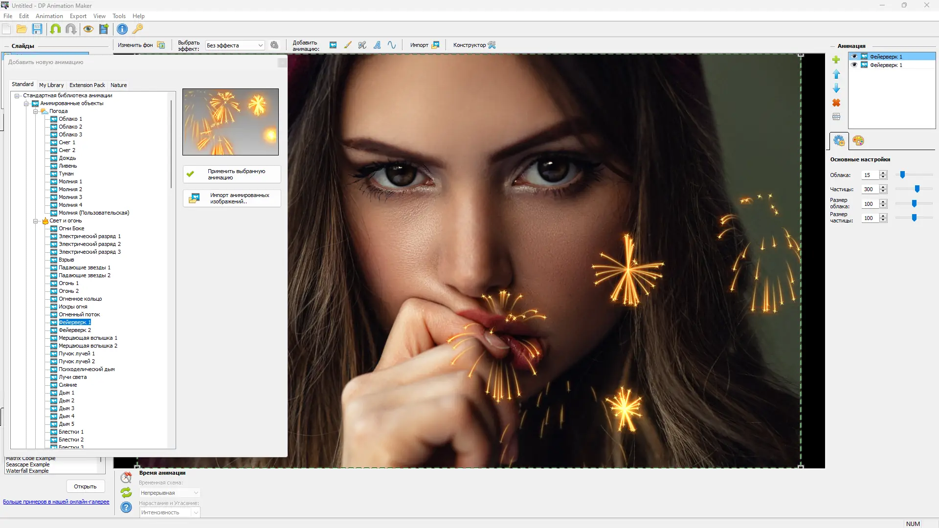 DP Animation Maker — это мощное программное обеспечение, позволяющее превращать неподвижные картинки в движущиеся сцены. Пользователю доступны более 60 готовых объектов, эффектов и кистей, которые при правильной настройке создают эффект присутствия и динамики. Благодаря интуитивному интерфейсу и множеству настроек, даже начинающий сможет быстро освоить все возможности и создавать профессиональные ролики, веб-баннеры, презентации и видеоконтент для различных целей. В программе реализована функция применения шаблонов, добавления текста, выбора музыки и управления сценой с помощью камеры, что значительно расширяет творческие возможности.