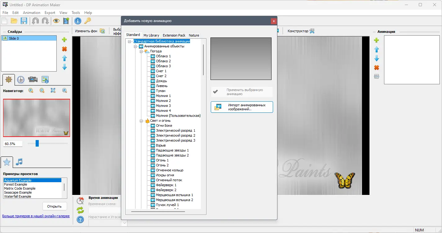 DP Animation Maker — это мощное программное обеспечение для создания анимационных видео из статичных изображений. Оно предлагает широкий набор инструментов для оживления ваших фотографий и иллюстраций, позволяя передать движения, освещение, отражения и другие эффектные элементы. Удобный интерфейс и разнообразие эффектов делают процесс анимации доступным как для профессионалов, так и для начинающих. Программа поддерживает импорт собственных GIF-анимированных файлов и экспорт в популярные форматы, такие как GIF, AVI, MOV, PNG и EXE. В ходе работы вы можете дополнительно использовать музыку, настраивать параметры камеры и подстраивать индивидуальные эффекты для достижения желаемого результата.