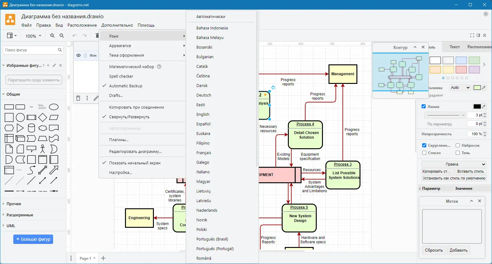 Draw.io — это современное и интуитивно понятное приложение, которое позволяет легко создавать разнообразные диаграммы высокого качества. Благодаря простоте использования и богатому функционалу, оно идеально подходит для быстрой реализации как простых, так и сложных графических решений. В комплекте поставляются многочисленные примеры и шаблоны, что помогает начать работу с минимальными затратами времени, а также вдохновляет на новые идеи и проекты.
