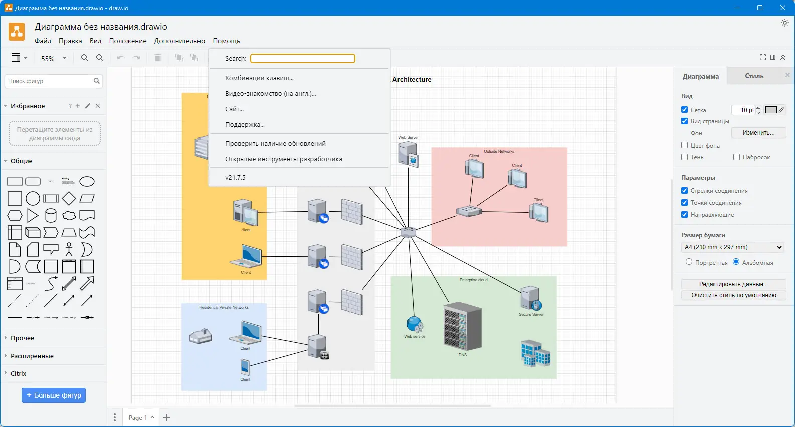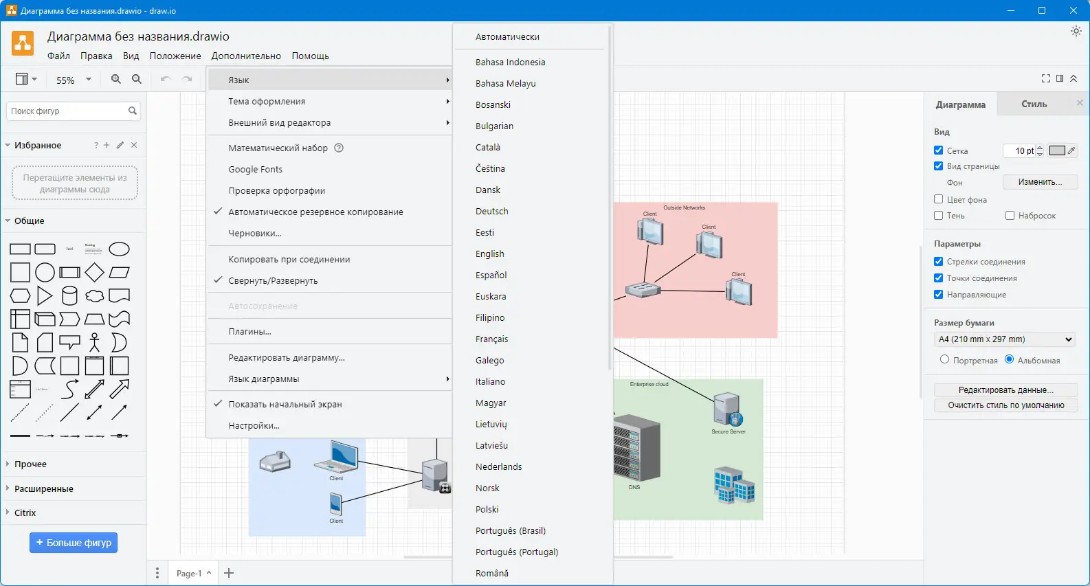 Draw.io — это бесплатное программное обеспечение, предназначенное для создания диаграмм и организации рабочего процесса. Идеально подходит как для студентов, так и для специалистов, которым необходимо визуализировать идеи, структуры или процессы. Программа обладает современным и интуитивно понятным интерфейсом, что позволяет быстро освоиться и реализовать качественные диаграммы без особых усилий. В комплекте поставки имеются многочисленные примеры, которые помогут начать работу с готовых шаблонов или вдохновят на создание собственных проектов.