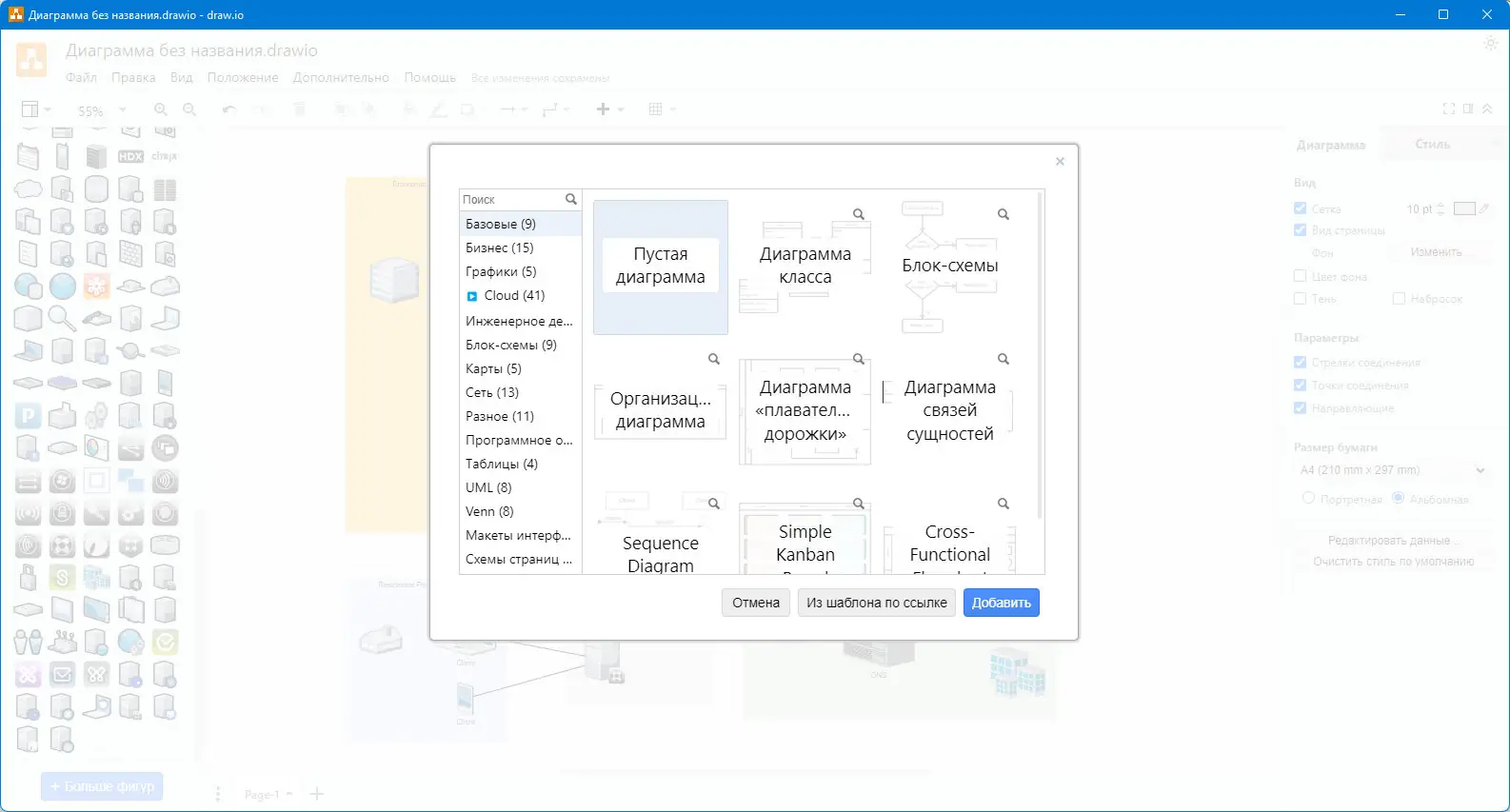 Draw.io позволяет реализовать разнообразные виды диаграмм, такие как диаграмма классов, потоковая диаграмма, блок-схема, схема коридора, диаграмма взаимосвязей между сущностями, диаграмма последовательности, канбан-доска, UML, сетевая диаграмма и диаграмма Венна. Эта универсальность делает программу незаменимой для разных сфер деятельности. Не требует инсталляции и может полностью работать с любого съемного носителя, что обеспечивает мобильность и удобство использования. Также существует блог поддержки, где пользователи могут получить дополнительные советы и рекомендации.