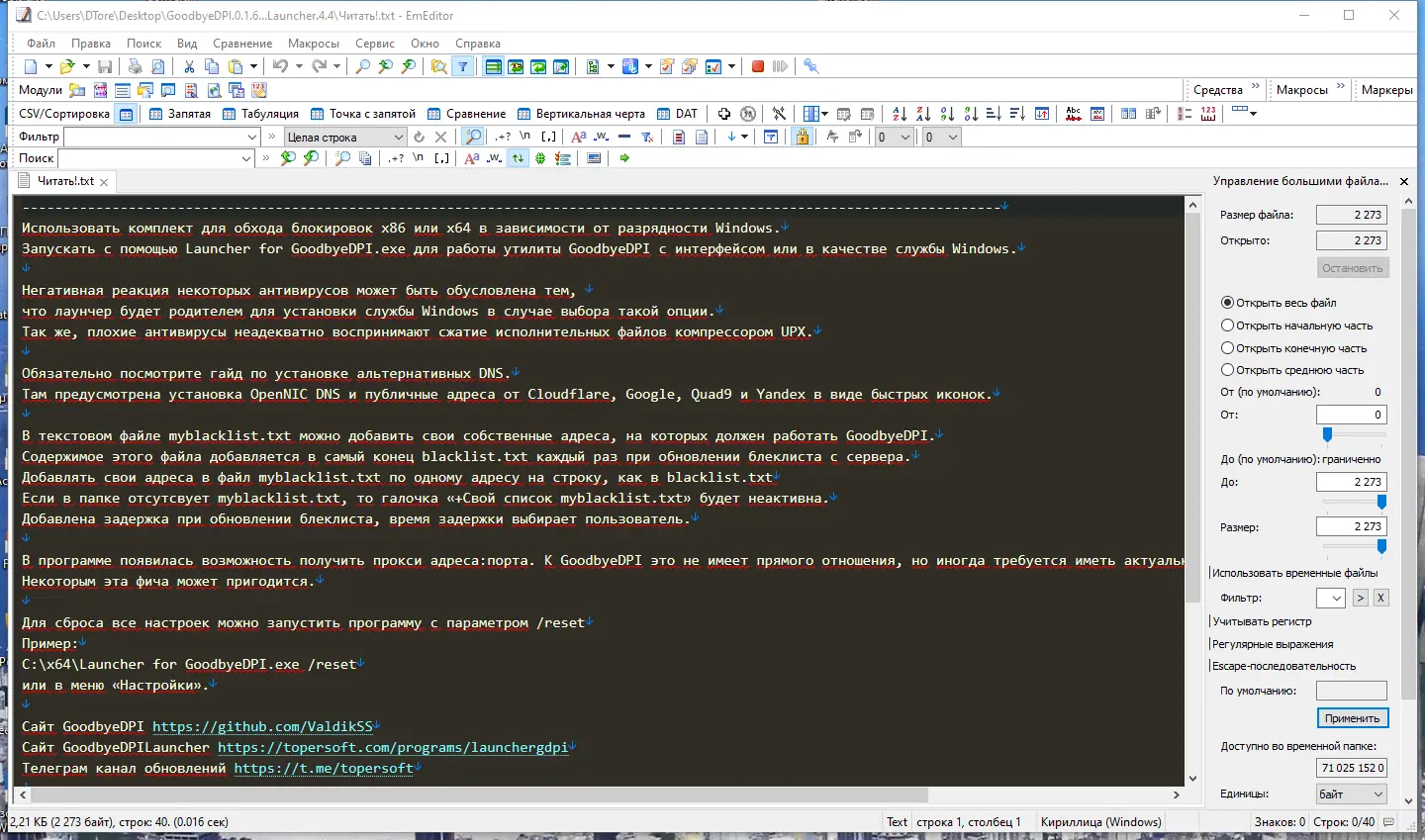 EmEditor отличается высокой производительностью, поддержкой обработки очень больших файлов и богатым набором функций, что делает его незаменимым инструментом для профессиональных задач.