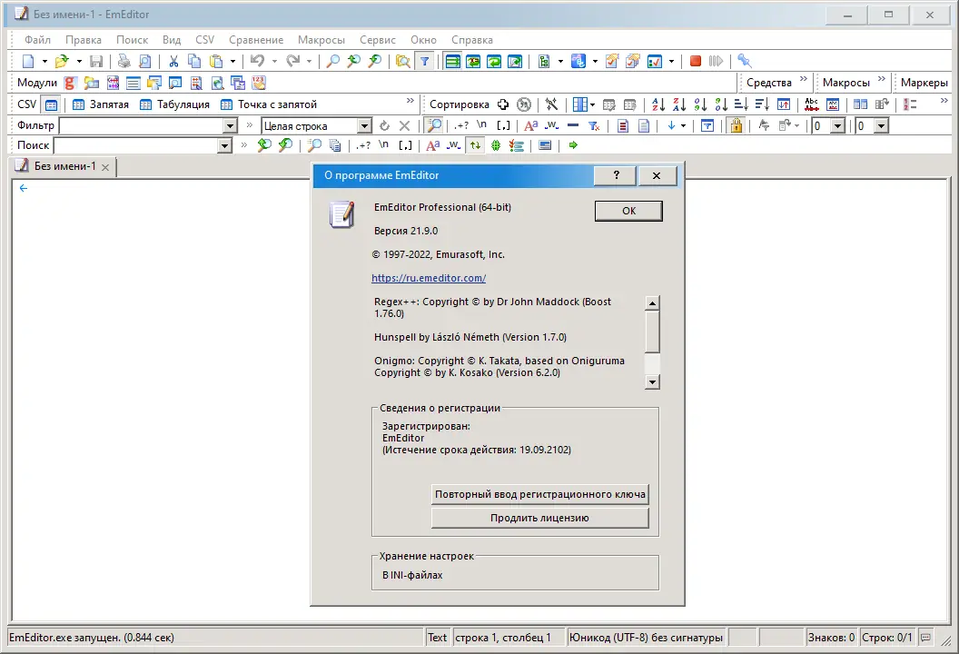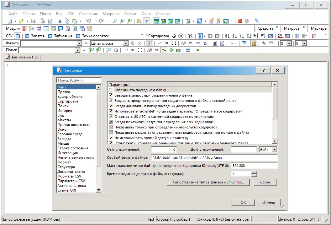 - По завершении установки запустите EmEditor и настройте тему оформления, импортировав необходимые файлы с расширением *.etheme и конфигурации подсветки (*.esy).