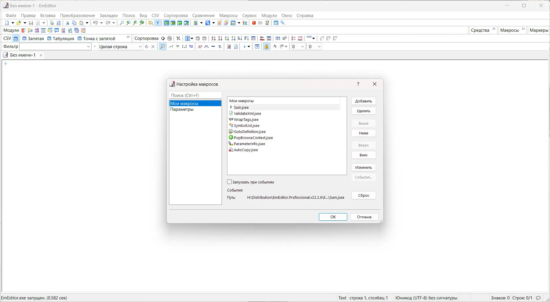 EmEditor Professional – мощный и универсальный текстовый редактор, специально разработанный для профессиональных пользователей, веб-разработчиков и обычных пользователей. Программа обеспечивает высокий уровень автоматизации и расширенные возможности по работе с текстом благодаря поддержке подсветки синтаксиса, работы с файлами больших размеров и широкому функционалу макросов, написанных на jаvascript и VBScript. Это делает EmEditor незаменимым инструментом для редактирования HTML, PHP, XML, JSON и множества других языков программирования. Помимо этого, редактор позволяет просматривать, редактировать и создавать файлы любой сложности и размера, включая двоичные файлы и файлы размером до 248 ГБ. Интуитивно понятный интерфейс с настраиваемыми панелями, встроенные плагины и возможность подключения внешних приложений делают его универсальным решением для различных задач редактирования текста.