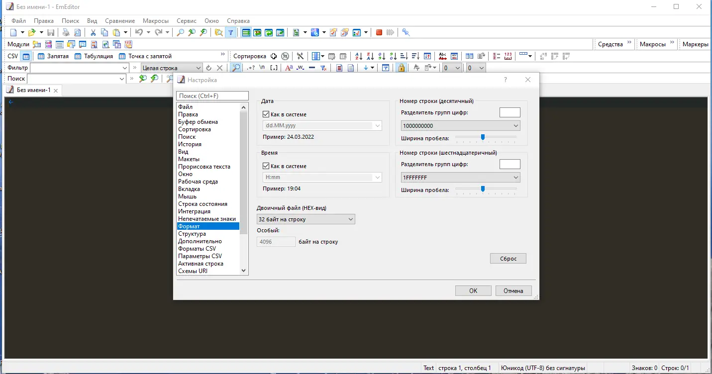 - Поддержка обработки файлов объемом до 248 Гб и редактирование двоичных файлов