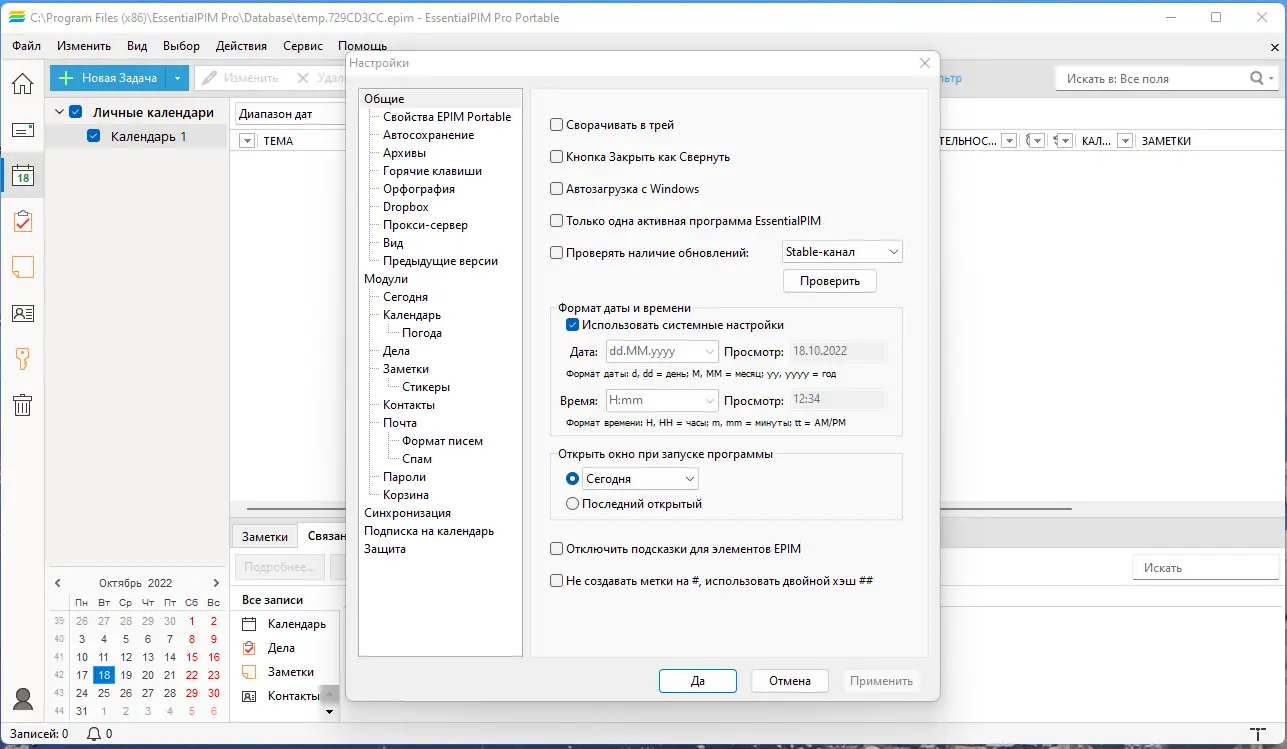 EssentialPIM — это многофункциональный менеджер персональных данных, обладающий продуманным интерфейсом и широким набором возможностей. Он содержит инструменты для работы с календарем, задачами, заметками и контактами, обеспечивая организацию информации в одном приложении. Программа поддерживает функции печати, импорта и экспорта данных, а также возможность запуска с переносных USB-накопителей, включая сертифицированную версию U3 SmartDrive. Поддерживается синхронизация с карманными гаджетами и смартфонами под управлением WindowsMobile, PalmOS, а также интеграция с MS Outlook. В системе реализована двойная криптозащита — 128-битное шифрование и дополнительные меры безопасности, позволяющие удобно хранить пароли и конфиденциальную информацию.