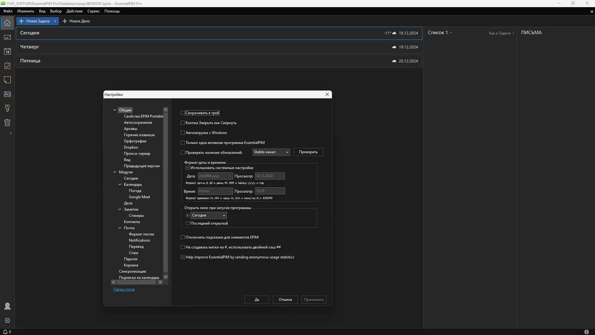 EssentialPIM — это мощный и функциональный почтовый клиент и органайзер, обладающий широкими возможностями интеграции со всеми основными онлайн-сервисами. Это отмеченное различными наградами решение, предназначенное для повышения вашей производительности и упрощения повседневных задач. Благодаря поддержке большого сообщества пользователей, программа стала одним из самых популярных инструментов в своей категории, отличающихся интуитивно понятным интерфейсом и возможностью полной персонализации. EssentialPIM Pro предлагает расширенный набор функций для управления электронной почтой, календарем, задачами, заметками, контактами и паролями, являясь достойной заменой Outlook и позволяя легко организовать рабочий и личный круговорот дел.