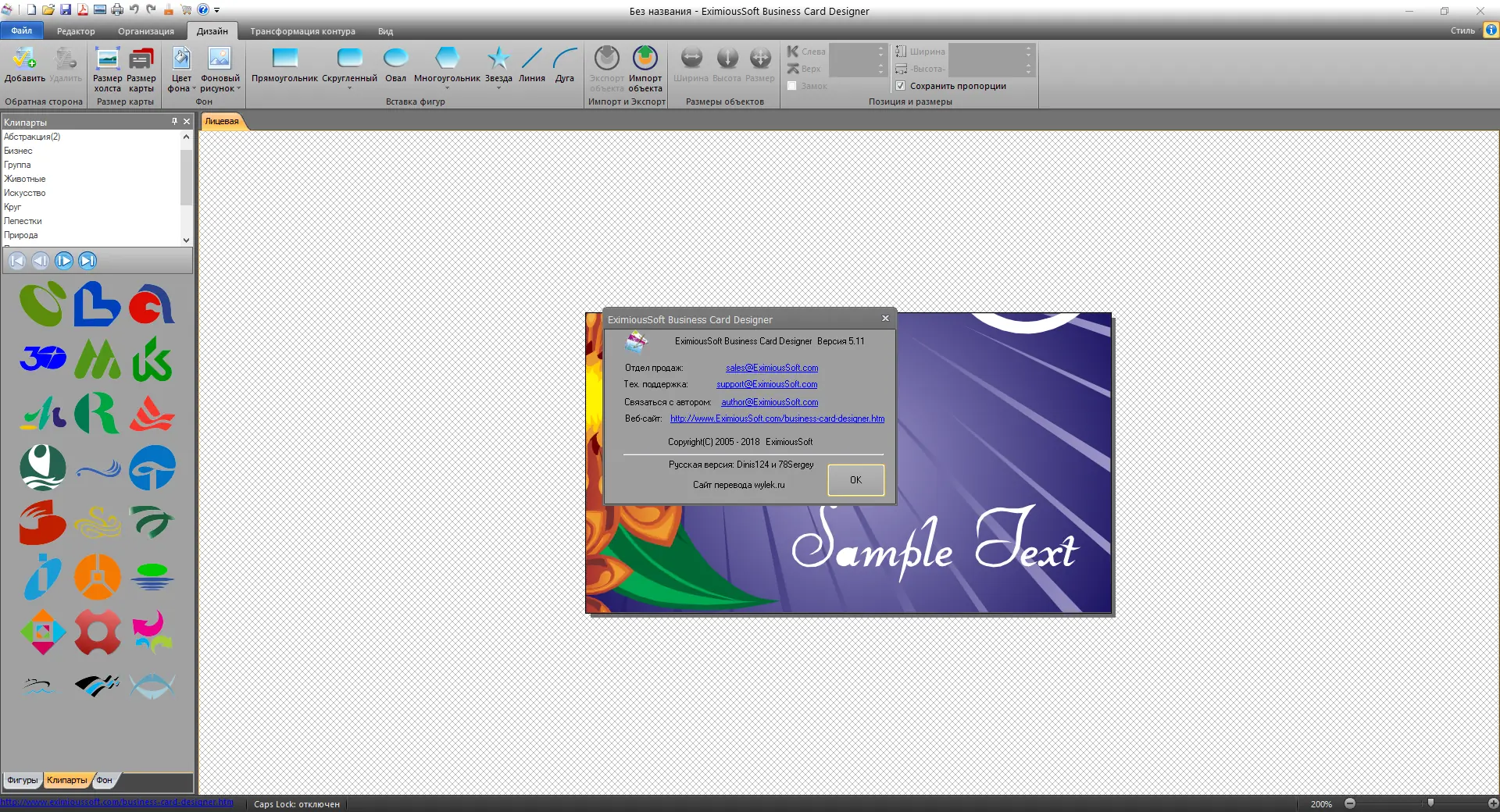 - Богатый набор шаблонов и элементов дизайна для быстрого создания визитных карточек