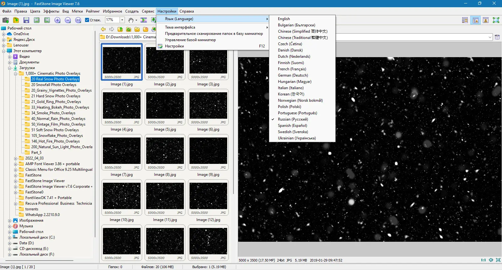 FastStone Image Viewer — это универсальный вьювер, редактор и конвертор графики, предназначенный для эффективного управления коллекциями изображений. Программа обладает интуитивно понятным интерфейсом, напоминающим Windows Explorer, что облегчает навигацию и работу с файлами. Поддерживаются все популярные форматы графики: JPEG, PNG, GIF, TIFF, BMP, RAW и многие другие. Среди функций — пакетное изменение размеров и переименование, удаление ненужных фрагментов, подгонка и изменение цветовой гаммы, установка водяных знаков, создание слайдшоу с эффектами и музыкальным сопровождением, а также возможность делать скриншоты целого экрана или его части. Встроены мощные инструменты для редактирования изображений, включая изменение размера, поворот, коррекцию освещения, настройку цветов, применение различных графических эффектов и добавление текста и фигур. Поддерживается работа со сканером, создание контактных листов, печать и создание художественных изображений из семейных фото для персональных обоев. Программа также позволяет управлять метаданными EXIF, работать в полноэкранном режиме и запускать избранные функции одним кликом.