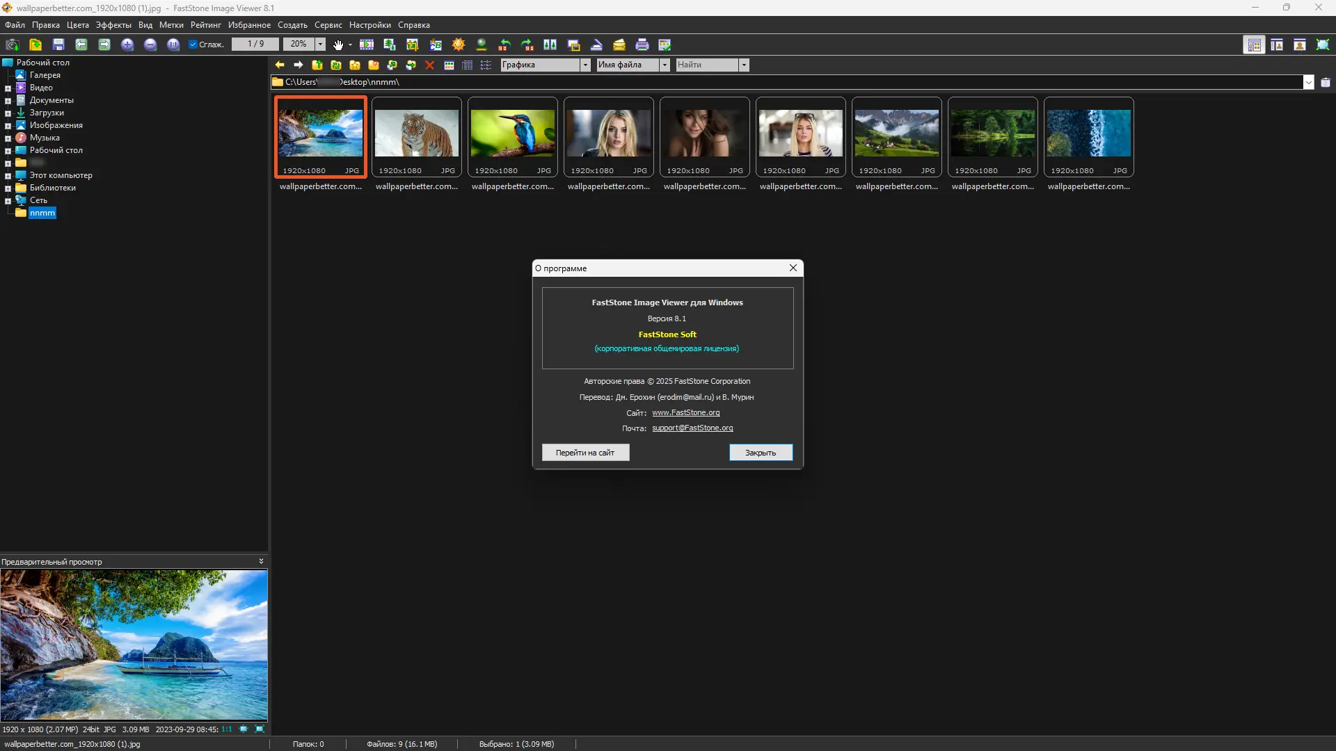 FastStone Image Viewer — это мощный просмотровщик и редактор изображений, объединяющий удобный интерфейс с широким набором функций. Поддерживаются все основные форматы изображений, включая JPEG, PNG, GIF, TIFF, RAW и другие, а при установке кодека WEBP — поддержка этого современного формата. В программе реализованы инструменты для пакетной обработки изображений, создание слайдшоу с эффектами и музыкальным сопровождением, а также возможности для редактирования, включающие изменение размеров, корректировку цвета, добавление текста и эффектов. Кроме того, есть функция создания скриншотов, поддержки работы со сканером и возможность работы в полноэкранном режиме, что делает работу максимально комфортной и эффективной.