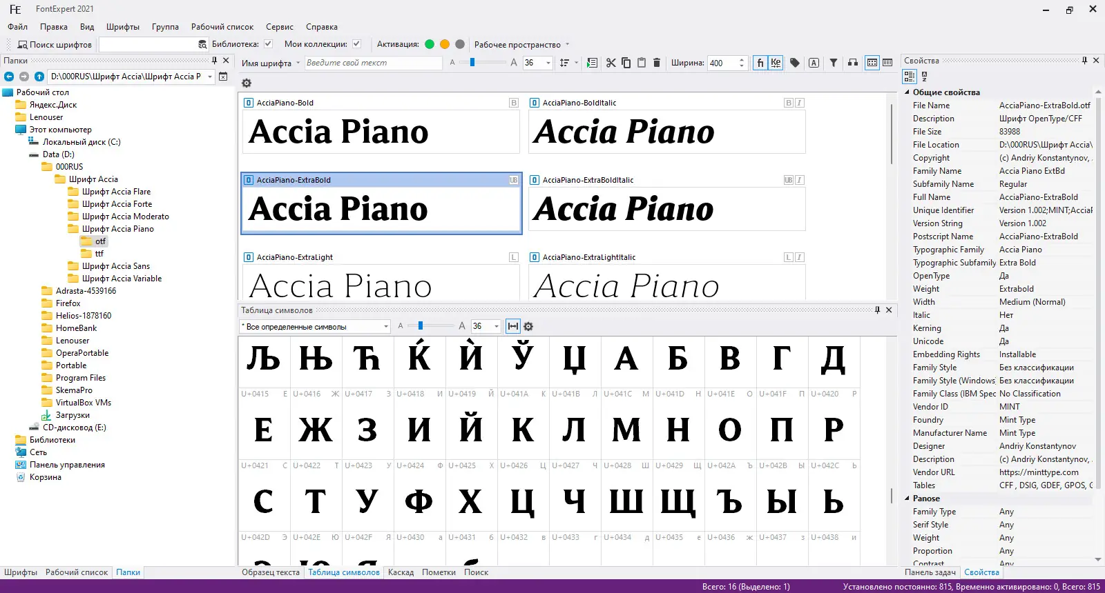 FontExpert — это полнофункциональная программа для просмотра, управления, поиска и печати шрифтов. Она позволяет обнаруживать и устранять проблемы со шрифтами различных форматов, таких как TrueType, OpenType и PostScript. Инструмент отображает гарнитуры установленных шрифтов, а также предварительно просматривает шрифты, находящиеся на жестком диске, сетевых устройствах и съемных носителях. Благодаря гибкому интерфейсу можно просматривать шрифты в виде текста или таблицы символов, задавать размер, стиль и цвет шрифта. Программа осуществляет поиск шрифтов по локальным и сетевым дискам, позволяет создавать коллекции и управлять ими, удалять дубликаты, испорченные или неполные шрифты. Также есть возможность печати и просмотра свойств шрифта, включая информацию о разработчике, авторских правах и метриках. Встроенный модуль “Доктор Кириллов” помогает выявлять и устранять проблемы с шрифтами, оптимизируя работу операционной системы.