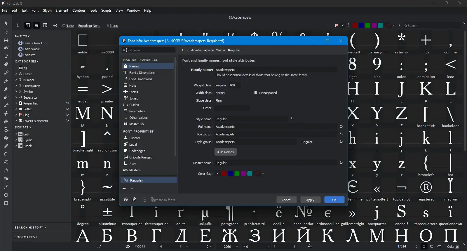 FontLab 8 представляет собой универсальный инструмент для полного цикла разработки шрифтов — от первоначального дизайна до финальной экспортации. Он позволяет создавать сложные проекты, одновременно поддерживая работу с разнообразными системами письма Unicode, включая латиницу, кириллицу, греческий, арабский, иврит, индийские языки, а также китайский, японский, эмодзи и символы. Благодаря богатому набору инструментов и фильтров, редактор позволяет точно настраивать интервалы, кернинг и хинтинг, а также преобразовывать форматы и добавлять новые стили в семейство шрифтов.