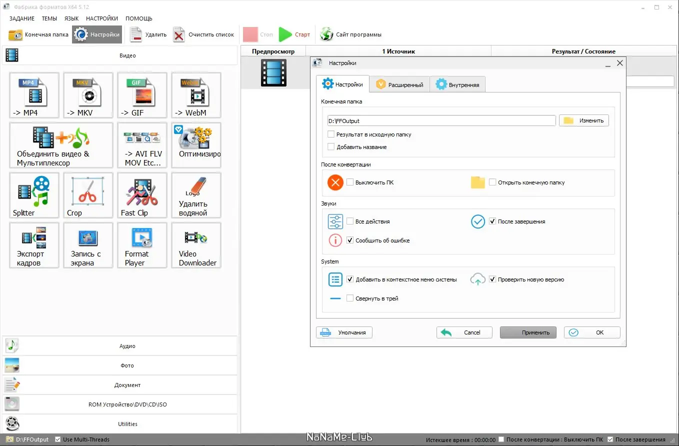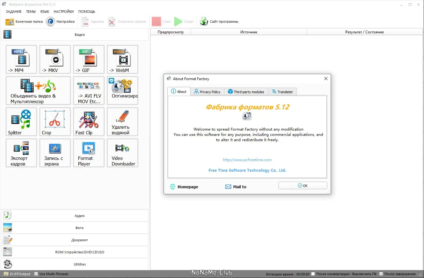 Format Factory — это универсальный конвертер мультимедийных файлов, позволяющий легко преобразовывать видео, аудио и изображения в нужные форматы. Программа обладает богатым набором дополнительных функций, что делает её незаменимым инструментом для работы с различными мультимедийными файлами.