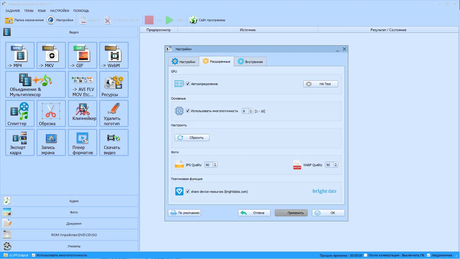 Format Factory — многофункциональный конвертер мультимедийных файлов, предлагающий широкий спектр возможностей для обработки видео, аудио и изображений. Программа обеспечивает конвертацию популярных форматов, а также предлагает дополнительные функции, такие как восстановление повреждённых файлов, изменение размеров и вращение изображений, а также копирование дисков DVD и CD в мультимедийные файлы. Этот инструмент совместим с различными платформами и поддерживает мультиязычный интерфейс, включая русский язык, что делает его удобным для пользователей разных стран.