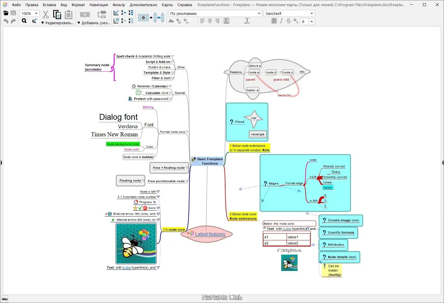 Несмотря на бесплатность, Freeplane обладает серьёзным функционалом, позволяющим реализовать практически любые требования по визуализации и структурированию информации. Возможности оформления и настройки позволяют создавать сложные карты, необходимые для бизнес-планирования, обучения или личных проектов. Полностью совместимая с различными операционными системами, в том числе Windows 7, 8/8.1, 10, 11, программа работает на 32 и 64-битных версиях и не требует обязательной установки благодаря портативной версии, упакованной в формат (.paf).