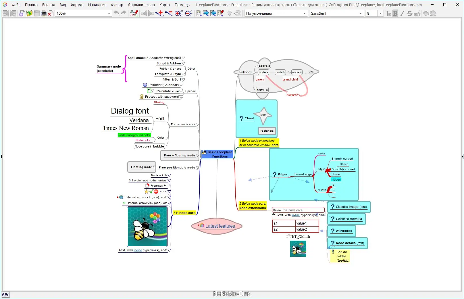 - Поддержка создания сложных и многоуровневых ментальных карт.