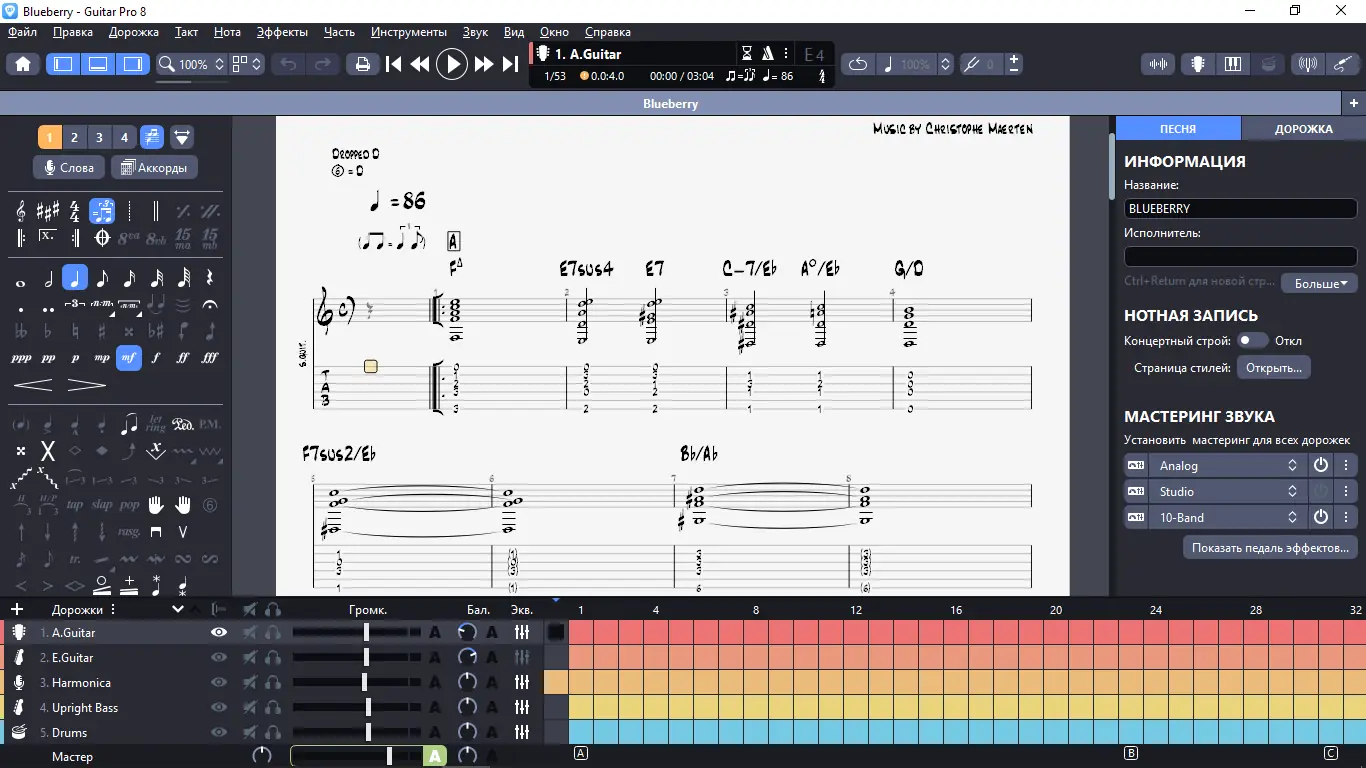 Мощный нотный редактор и инструмент для создания, редактирования и прослушивания гитарных табулатур и нотных партитур с расширенными возможностями, включающими встроенный MIDI-редактор и эффекты звукозаписи. Идеальный выбор для музыкантов, стремящихся улучшить исполнение, сочинять музыку или создавать минусовки.