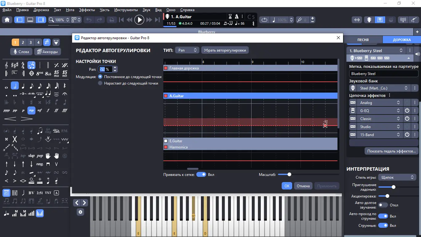 Guitar Pro обладает множеством профессиональных функций и удобным интерфейсом, что делает его ценным инструментом для музыкантов и композиторов. Его расширенные возможности позволяют работать не только с гитарными партитурами, но и с клавишными инструментами, а также создавать полноценные минусовки и аранжировки.