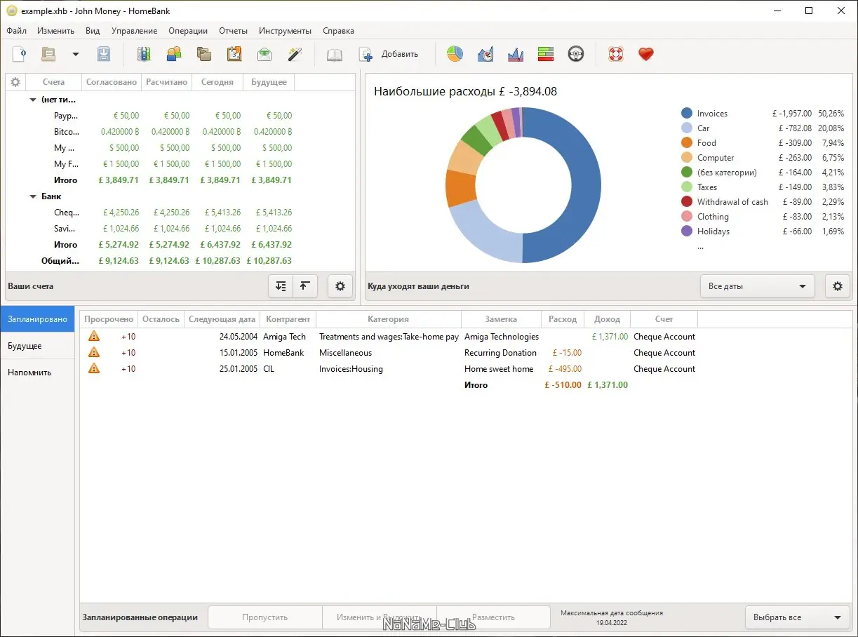 HomeBank — это программа, разработанная для помощи в ведении личных финансов. Она позволяет пользователю регистрировать все виды доходов и расходов, делая процесс учета простым и понятным. Настраиваемая под индивидуальные нужды, программа обеспечивает полное отображение финансовых операций и помогает контролировать движение средств. Воспользовавшись функциями автоматического формирования графиков и диаграмм, вы получите ясное представление о структурных особенностях расходов, включая топливо, страховые взносы или электронную технику. Поддержка различных типов счетов — наличные, банковские, инвестиционные и кредиты — позволяет учитывать и управлять всеми финансовыми активами. Ввод начального баланса и данных о счетах занимает минимальное время, после чего программа автоматически создает визуальные отчеты, способствуя более осознанному планированию бюджета.