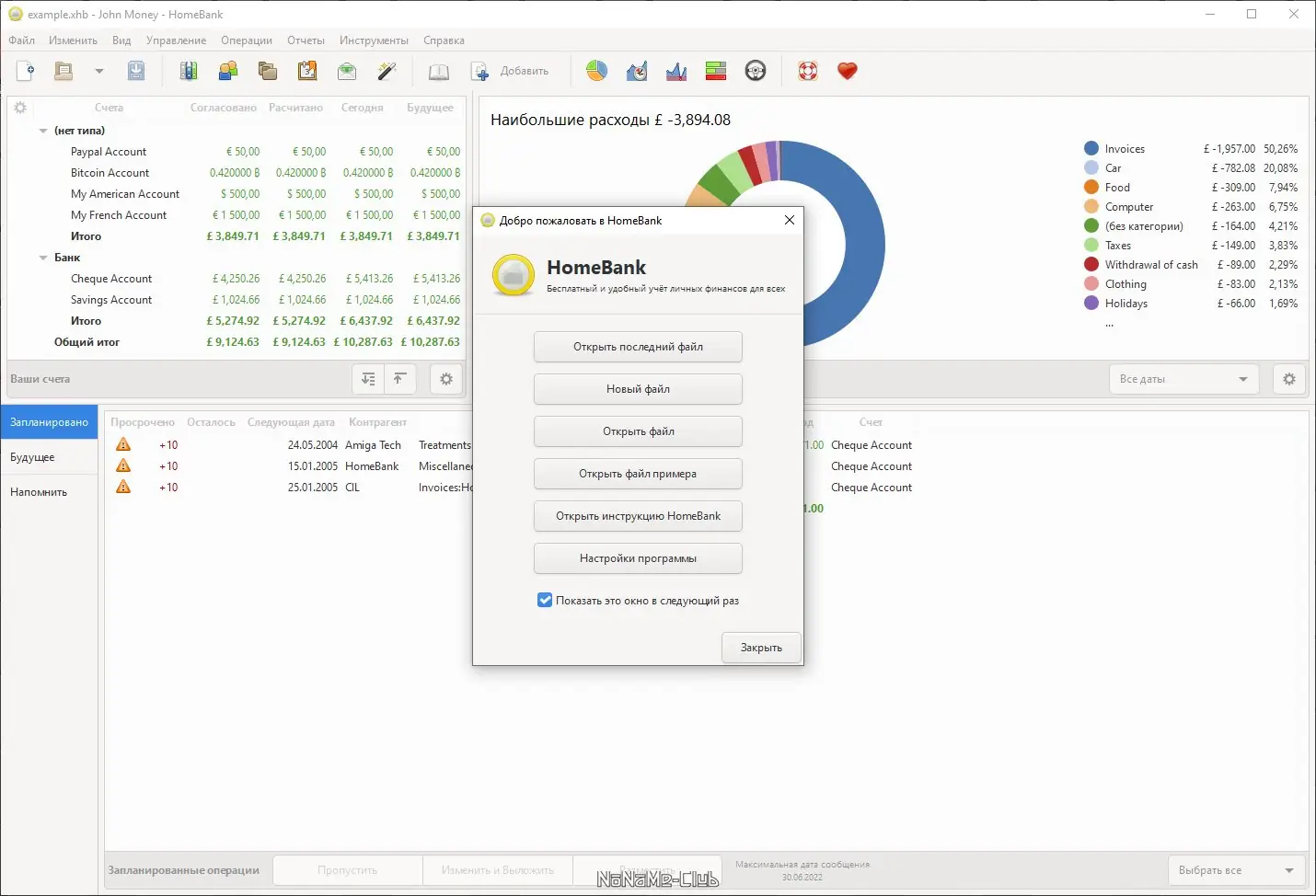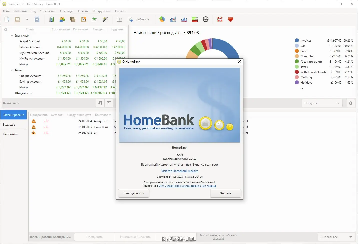 HomeBank — это мощный инструмент для управления домашним бюджетом, созданный для того, чтобы помочь вам контролировать ежемесячные и ежегодные расходы. Простым в использовании интерфейсом вы можете вносить все свои доходы и расходы, получая наглядное представление о финансовой картине. Программа позволяет полностью настраивать категории счетов, будь то наличные деньги, банковские расчётные счета, инвестиции или кредиты. После ввода информации HomeBank автоматически формирует графики и отчёты, разделённые по цветам, что облегчает понимание движения денег и планирование финансов. Возможности работы с разными типами счетов и автоматического определения категорий делают управление финансами максимально удобным и точным.