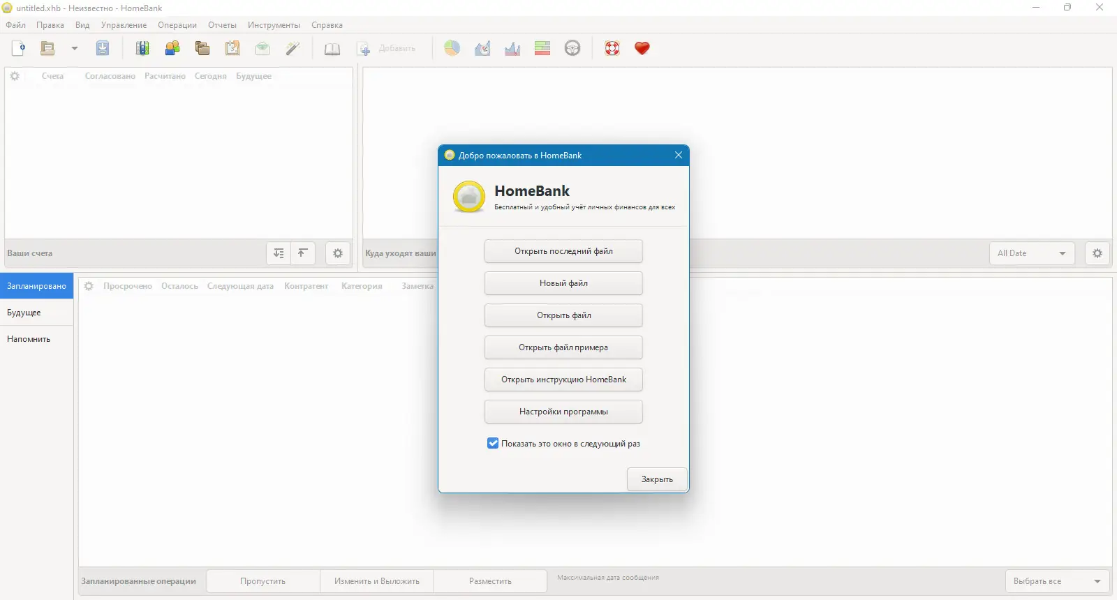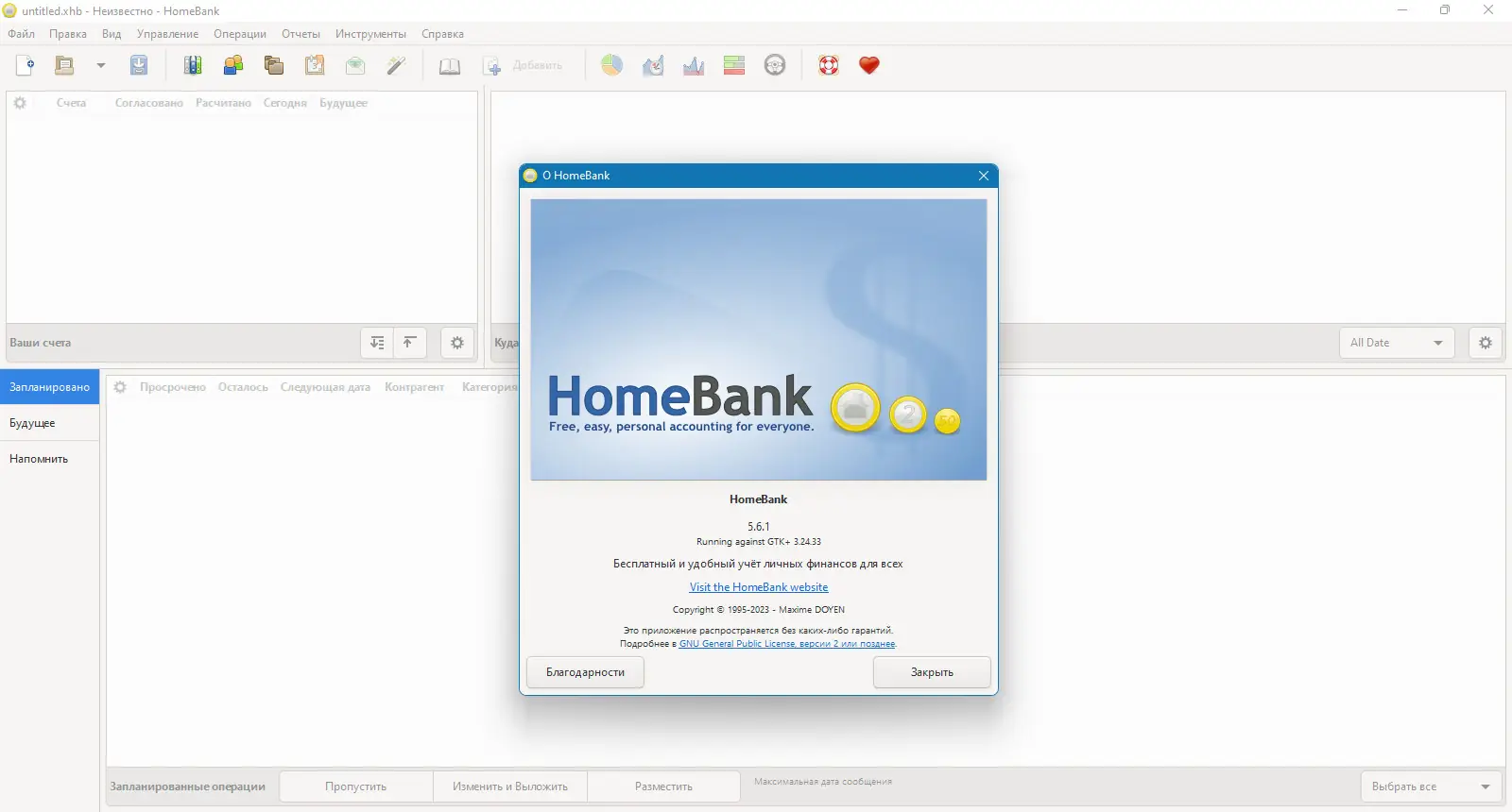 HomeBank – это мощный инструмент для управления домашним бюджетом и финансовым планированием. Он предназначен для того, чтобы помочь пользователю держать под контролем месячные и годовые расходы, а также отслеживать все доходы и расходы в удобной и понятной форме. Благодаря простым функциям, можно легко вводить данные о финансах, создавать графики и получать подробные отчёты. Программа полностью настраивается под индивидуальные потребности, позволяя отслеживать приход и уход денег со всех типов счетов, включая наличные, банковские, инвестиционные и кредитные. После внесения информации HomeBank автоматически генерирует визуальные аналитические материалы, такие как графики и диаграммы, что облегчает управление финансами и помогает принимать обоснованные решения.