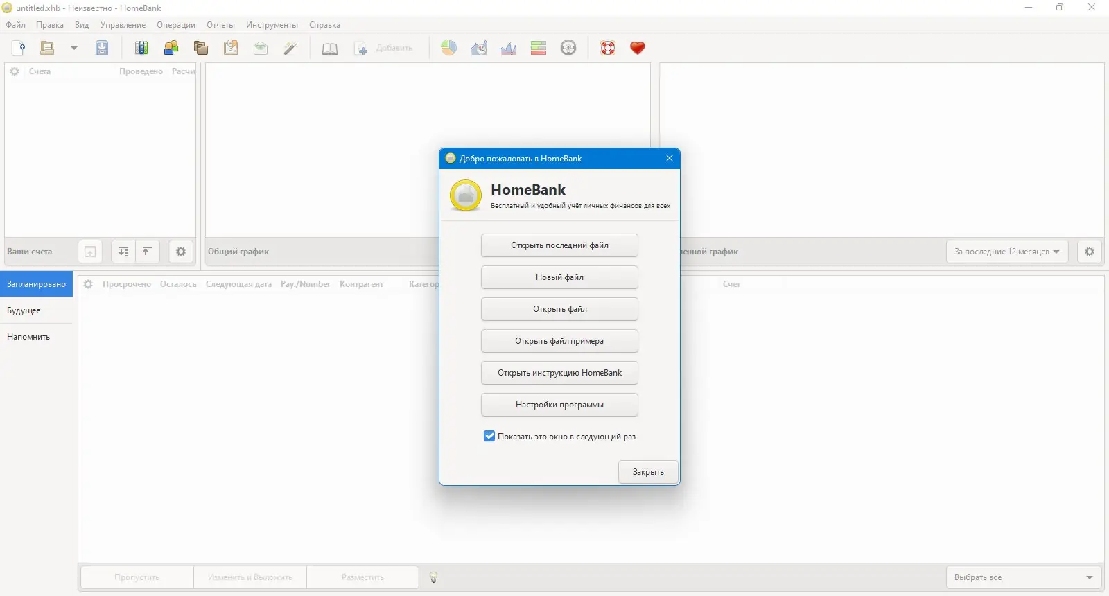 - По завершении установки запустите HomeBank и настройте начальные параметры.