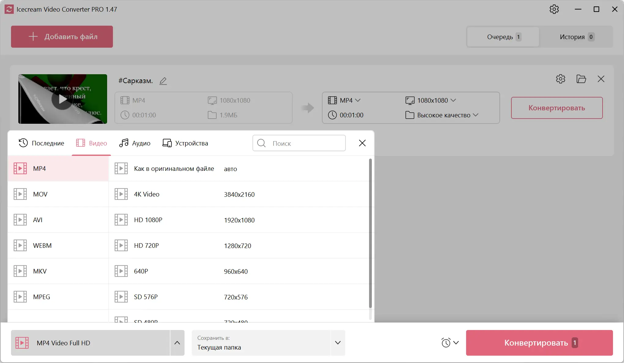 Icecream Video Converter — мощный и интуитивно понятный инструмент для конвертации мультимедийных файлов. Поддерживает большинство популярных форматов и идеально подходит для обработки видео и аудио на уровне новичков и профессионалов.