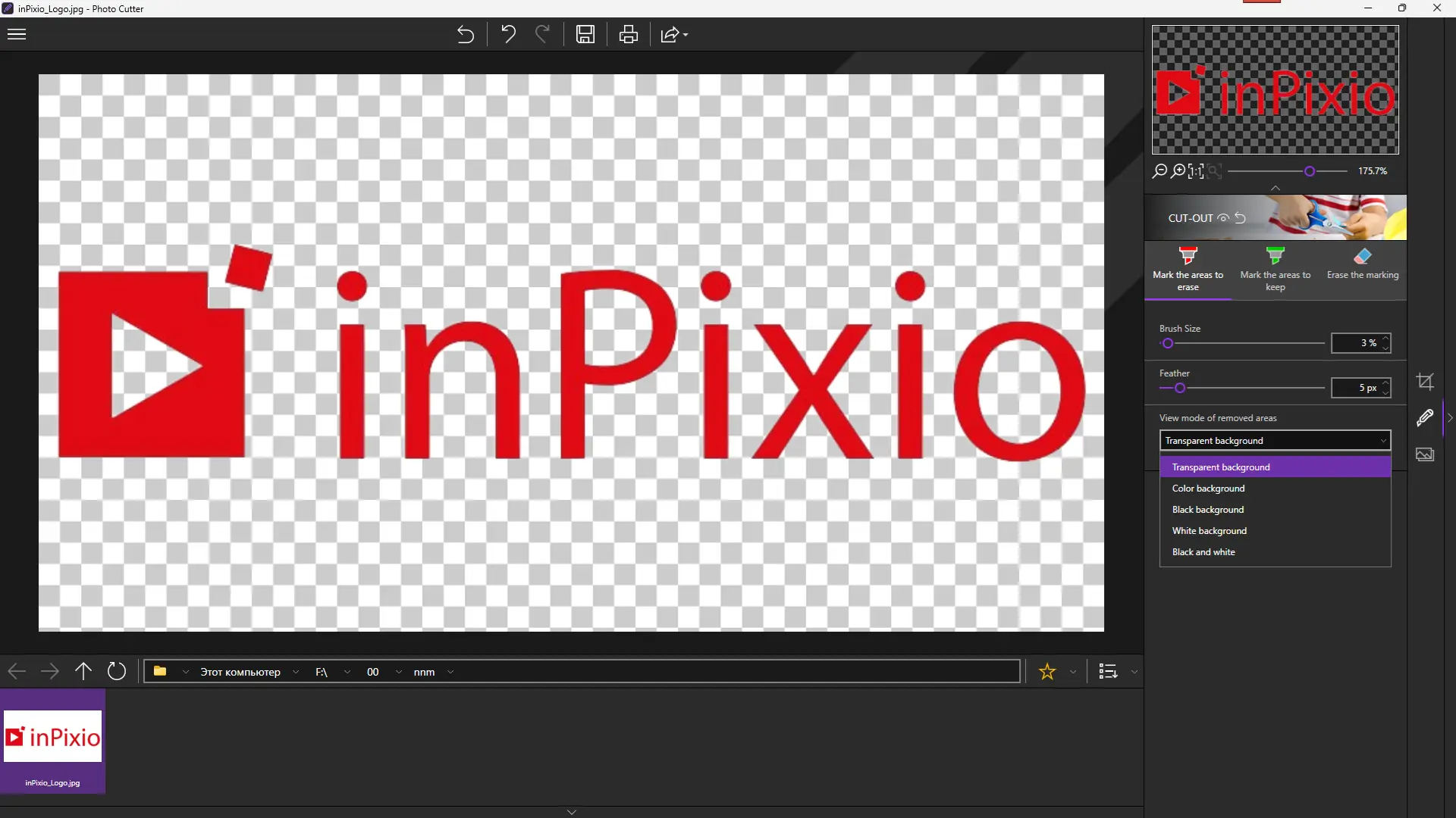 inPixio Photo Cutter — мощная программа для быстрого и точного вырезания объектов, лиц, элементов пейзажа с фотографий. Идеально подходит для создания коллажей и фотомонтажей всего за несколько кликов, благодаря автоматизированным алгоритмам и интуитивному интерфейсу.