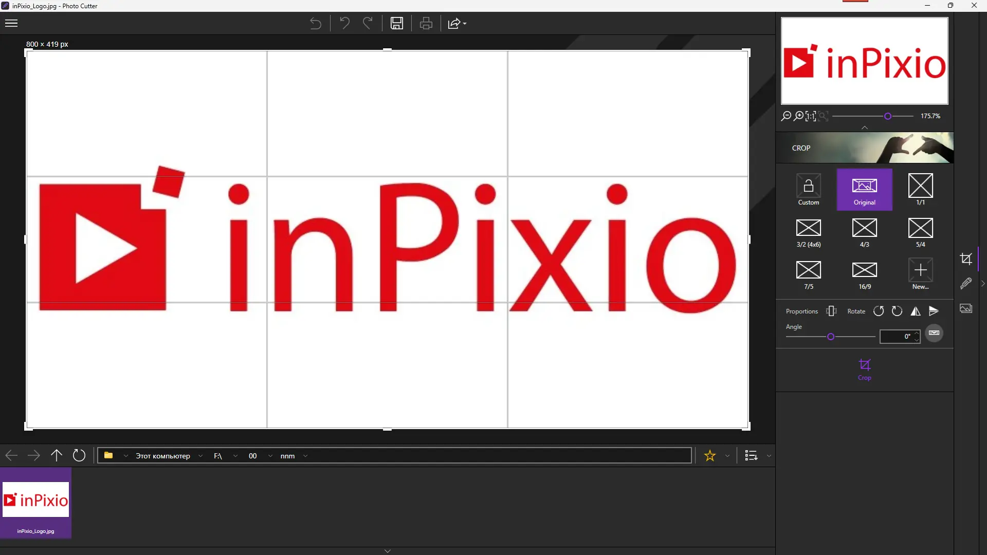 - Предустановленные форматы обрезки: 16:9, 4:3 и собственные настройки.