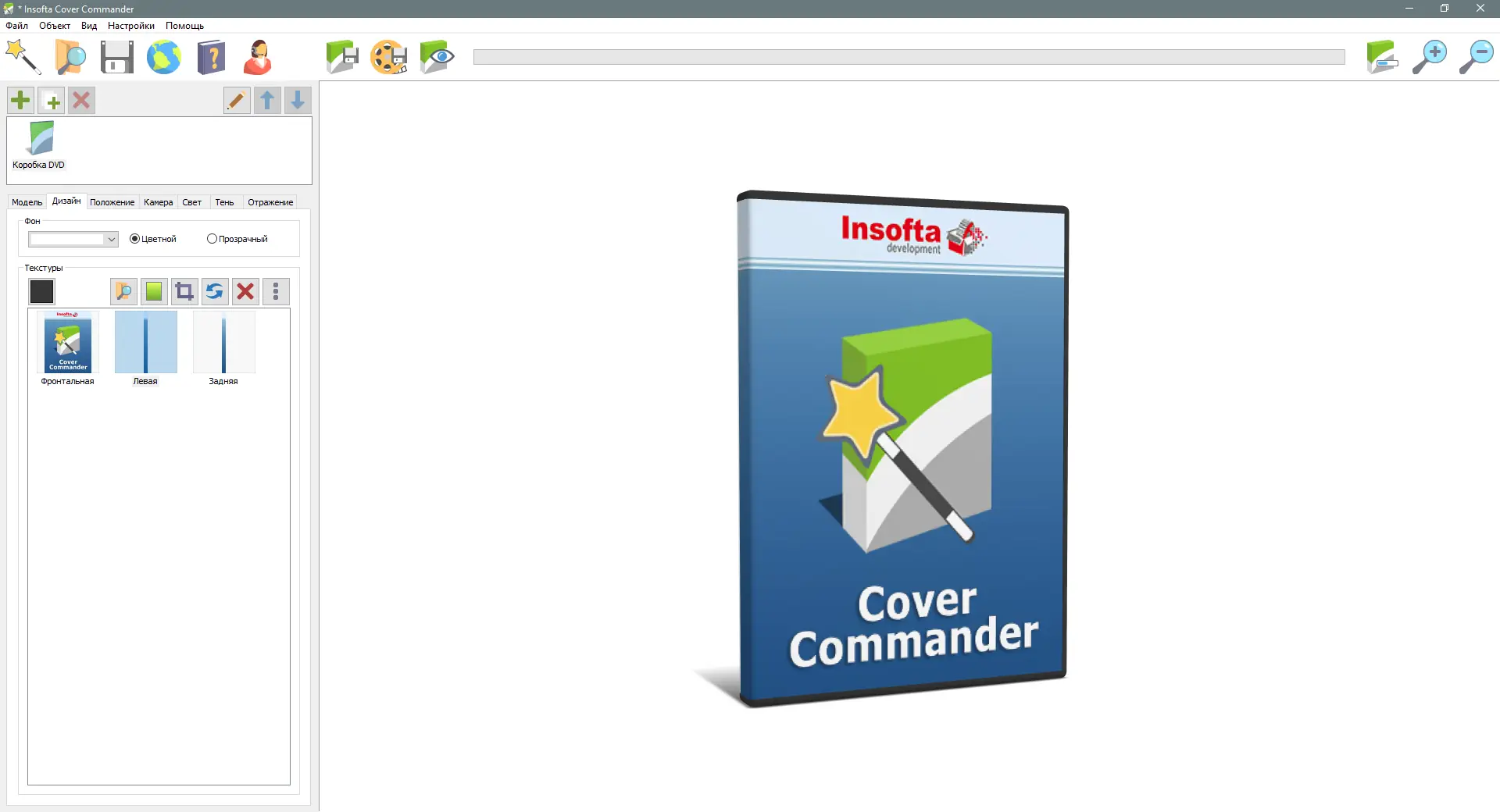 Insofta Cover Commander — профессиональный инструмент для создания визуальных представлений продукции. Позволяет быстро и удобно создавать виртуальные коробки, книги, DVD-коробки, руководства, CD-диски и скриншоты с высоким уровнем детализации.