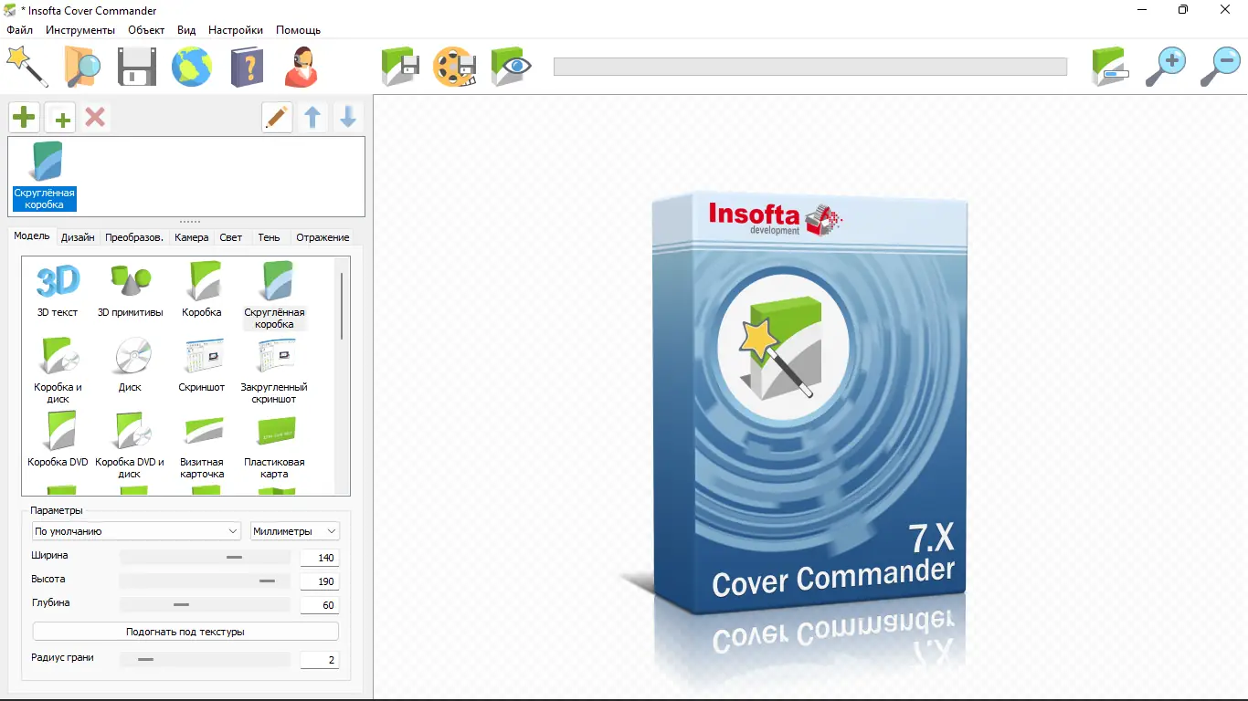 Insofta Cover Commander позволяет создавать профессиональные виртуальные коробки и упаковки, делая визуализацию продукции максимально привлекательной и реалистичной. Интуитивно понятный интерфейс и мощные настройки позволяют за считанные минуты получить качественный 3D-объект, будь то DVD-коробка, книга, смартфон или любой другой продукт. Возможности программы включают создание как простых изображений, так и сложных сцен с эффектами освещения, отражений и теней, которые отображаются в режиме реального времени. Мастер создания нового проекта автоматизирует рутинные задачи, освобождая время для креативных решений.
