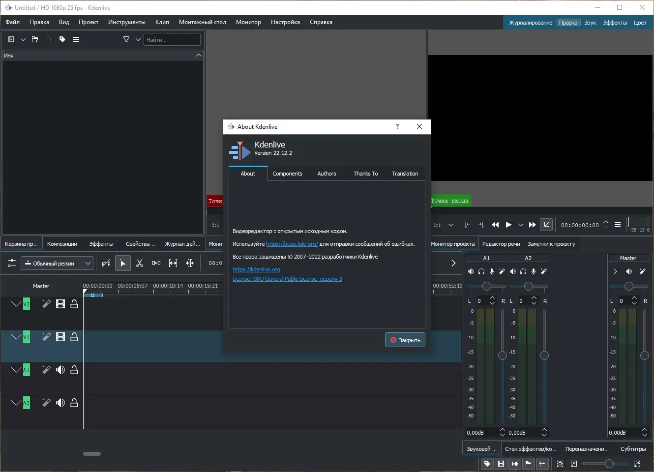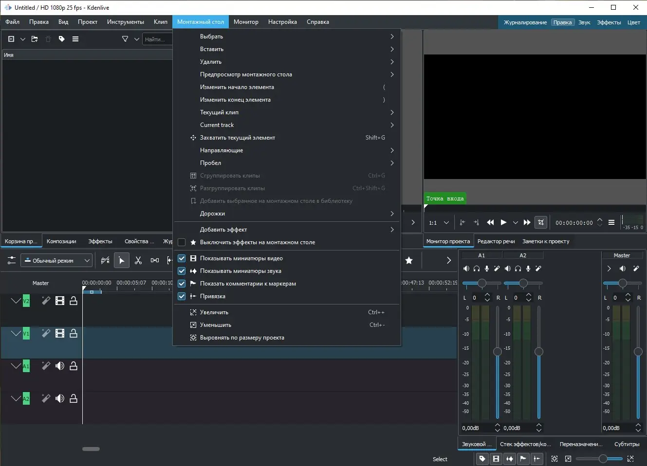Kdenlive — бесплатный нелинейный видеоредактор, предназначенный для выполнения широкого спектра задач по монтажу видео как начинающими, так и профессиональными пользователями. Он позволяет работать с различными форматами мультимедиа и предлагает инструменты для создания качественных видеопроектов.